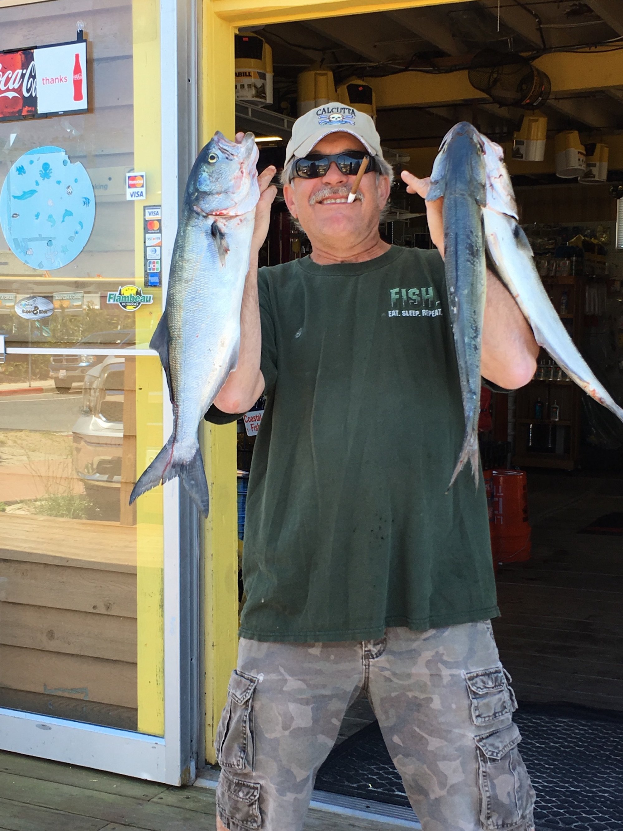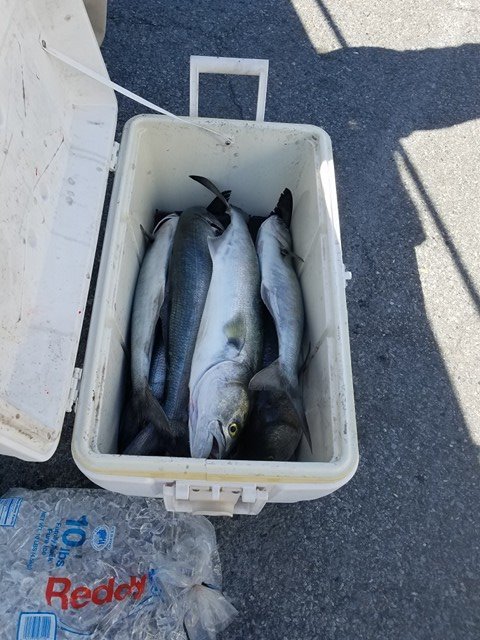 John Wittmyer of Crabs to Go and Big Bird Cropper used Big Bird’s Roy Rigs to catch a bunch of fish today. The boys combined forces to catch 20 bluefish and over 30 small rockfish from the inlet to the ocean fishing pier.