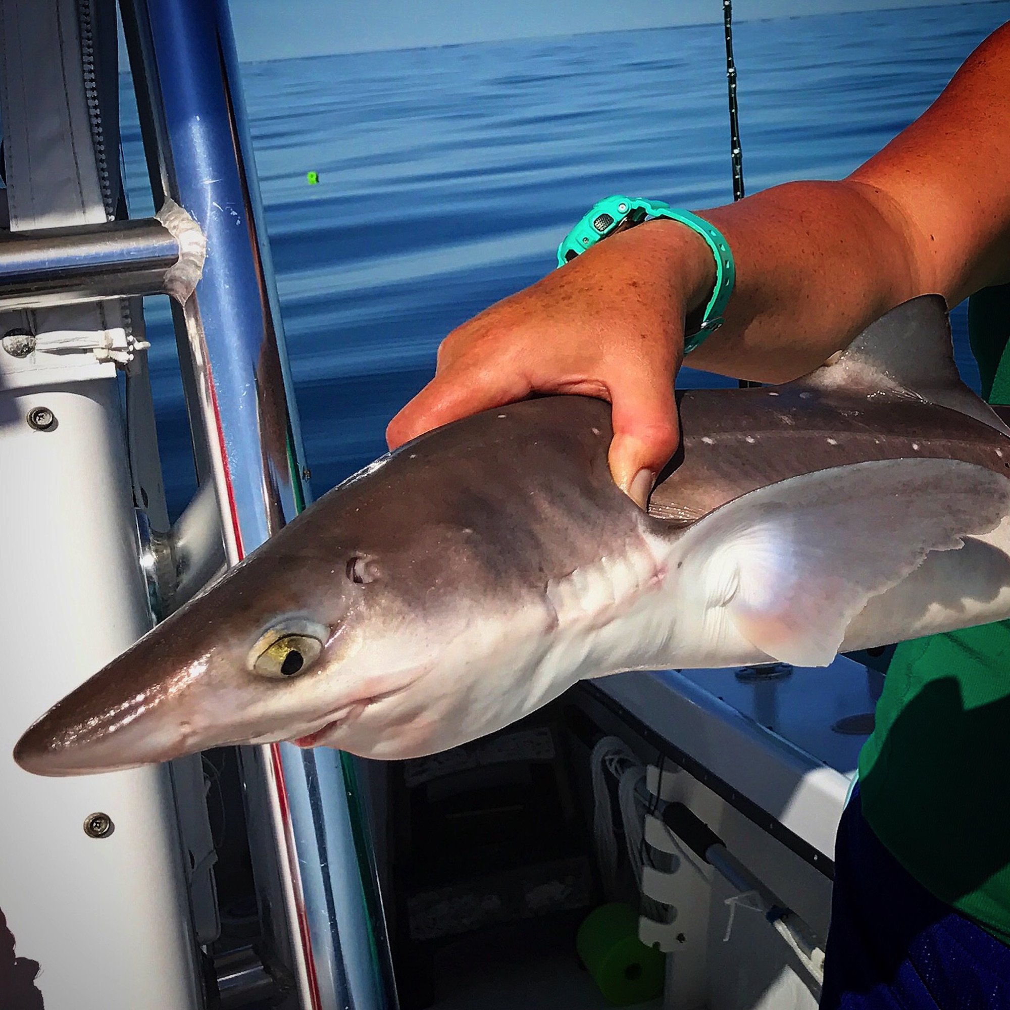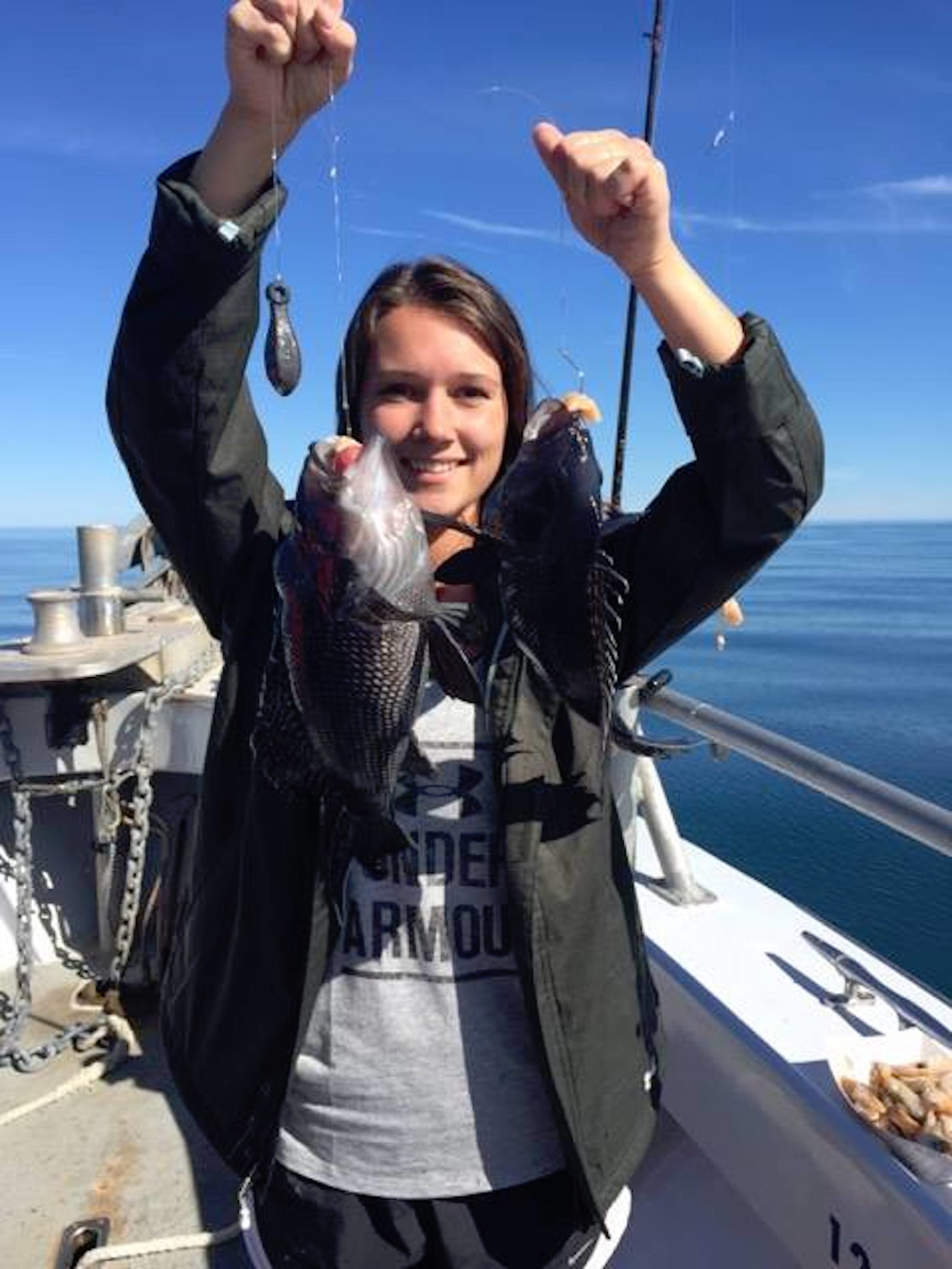 Captain Jeff Coats of Pitboss Fishing and his fiancé Karen took the Bad Influence out to the Jackspot in search of sharks and enjoyed the slick calm conditions as well. Captain Jeff and Karen didn’t manage any sharks, but did catch some spiny dogfish and some sea bass.