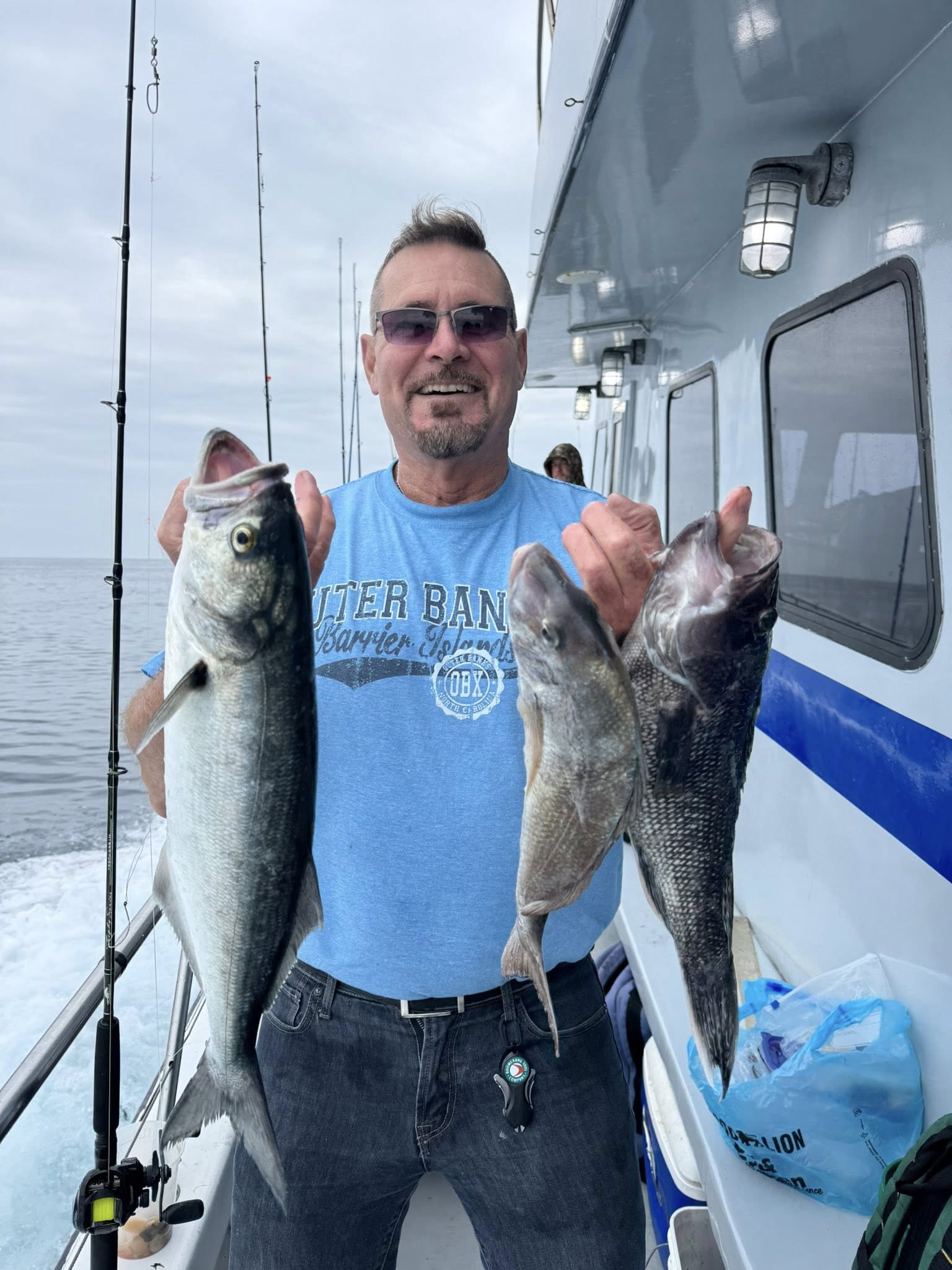 Captain Chris Mizurak of the Angler reported a good bite today with lots of sea bass, some bluefish, a couple of porgy and some keeper flounder to as big as 8 pounds.