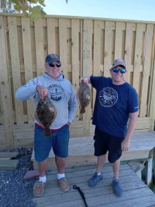 Captain Wayne Blanks of Bayside Guide Service found a couple of keeper flounder in the east channel on this afternoon’s trip.