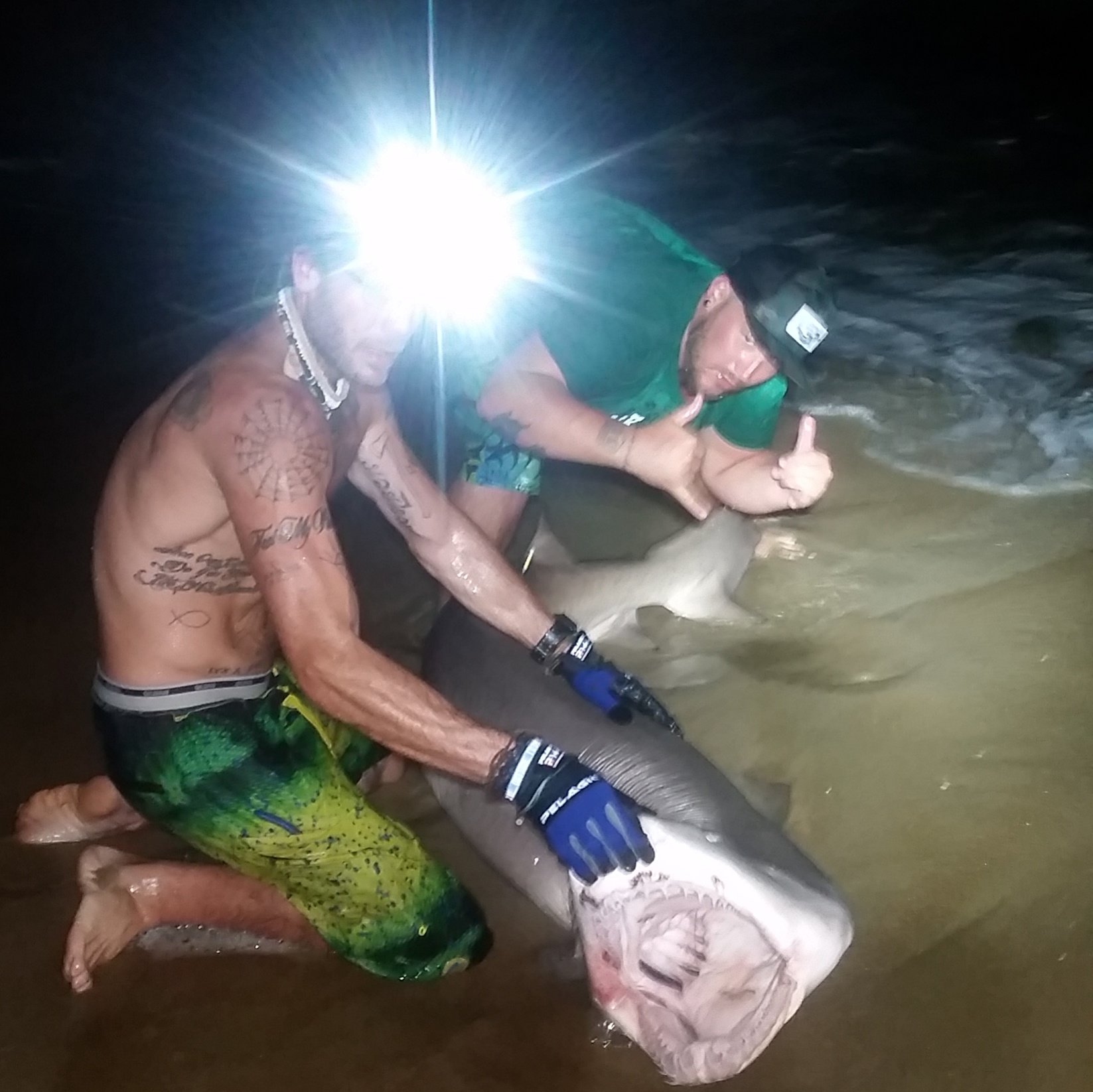 I got a submission from Bear at the Oceanic Pier today that Joe and the boys from the OC Sharkin’ team caught another big sand tiger in the surf early this morning. Joe and the guys know what they are doing and always release these fish alive back into the surf.