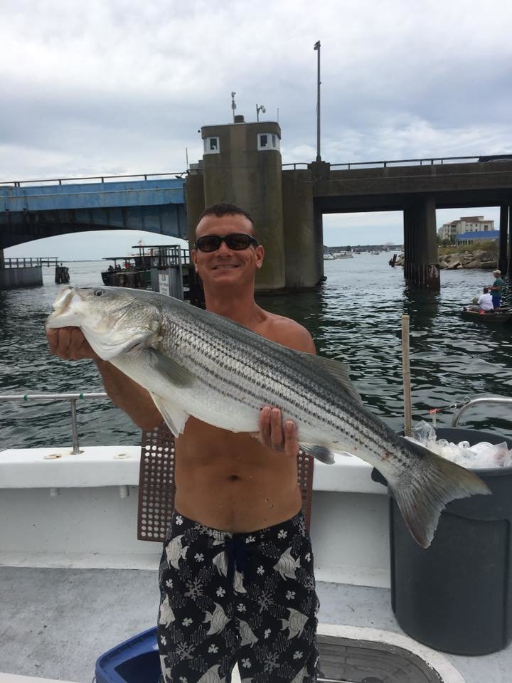 Captain Dean Lo decided to drop a piece of clam down after returning from a recent trip aboard the Angler and was rewarded with a beautiful 34″ keeper rockfish.