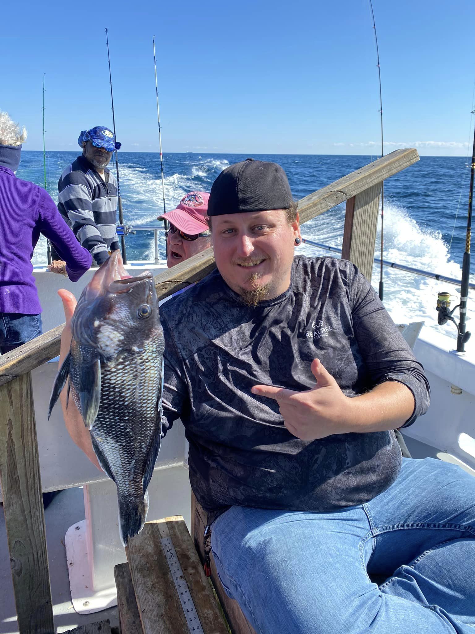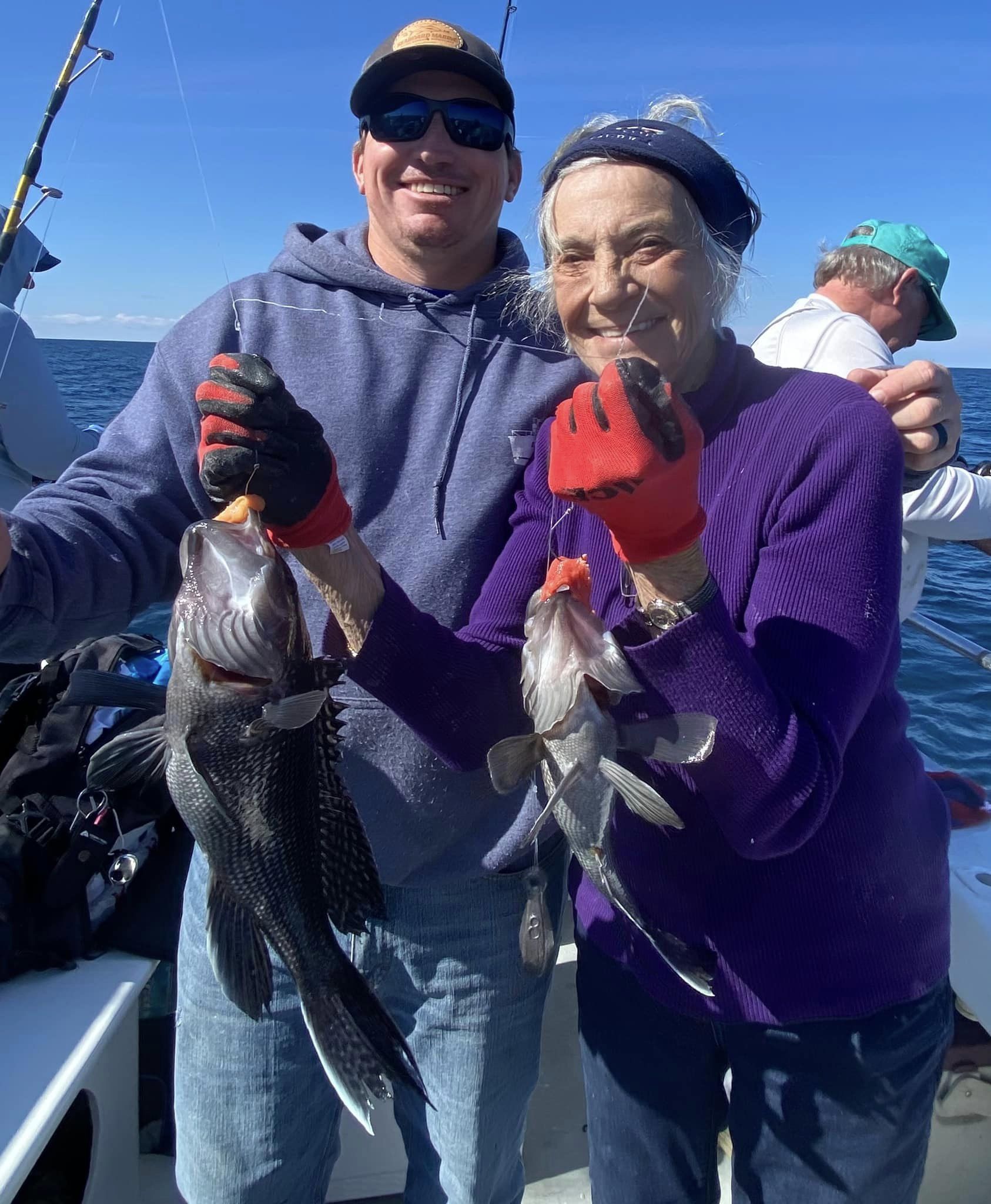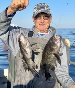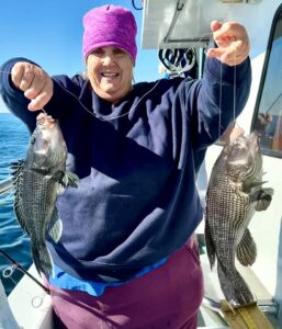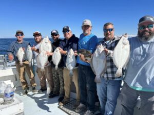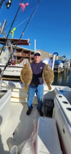 Captain Kane Bounds of the Fish Bound and his crews have been seeing some really good fishing when the weather allows with good catches of flounder and some dandy sea bass.