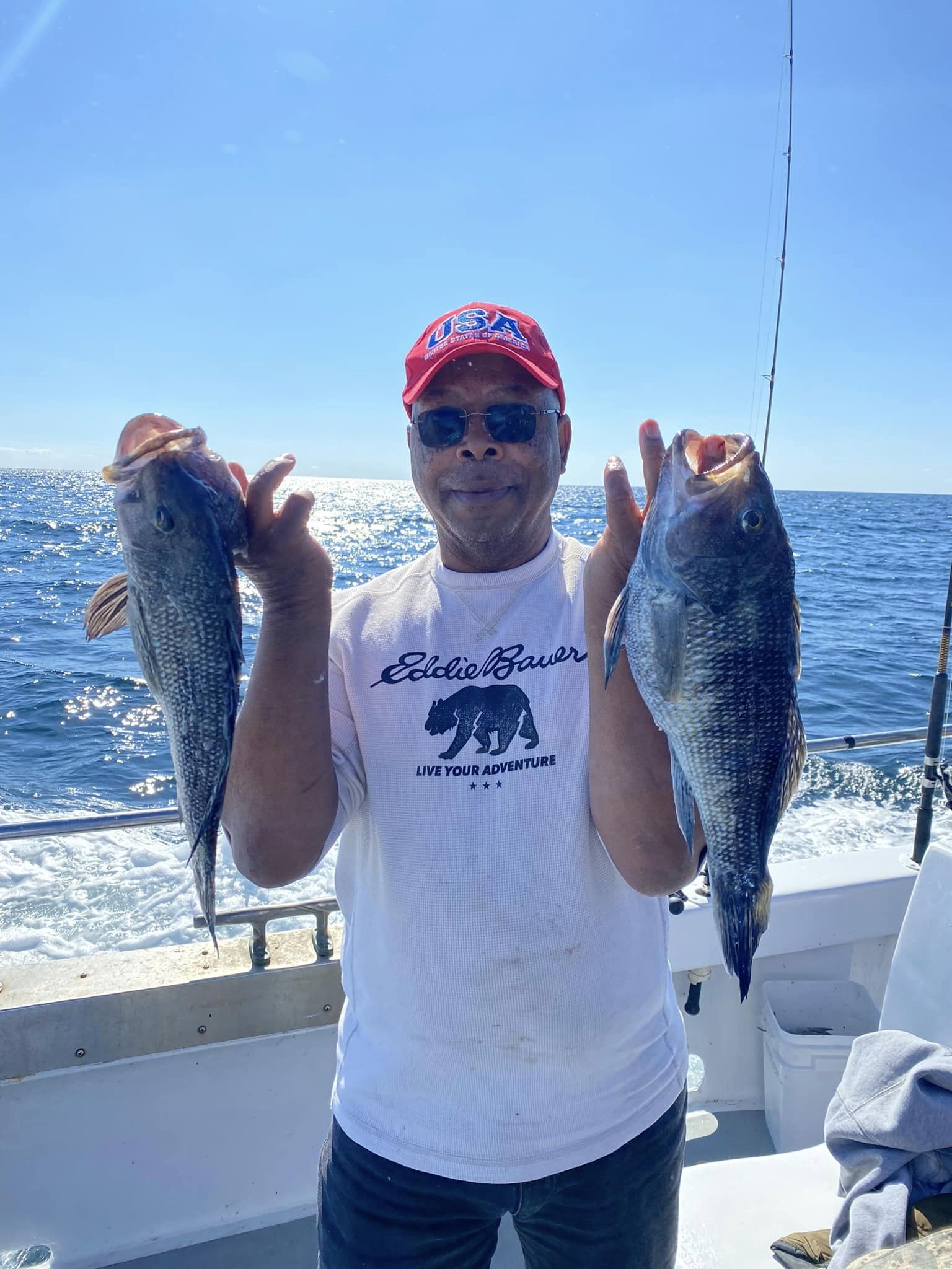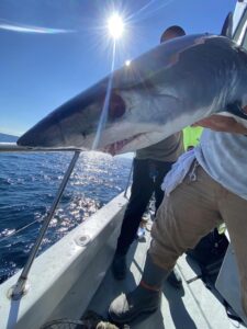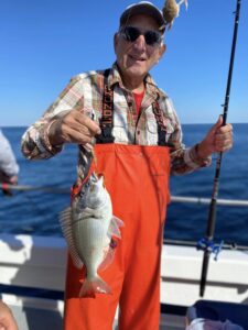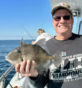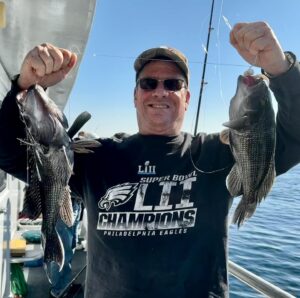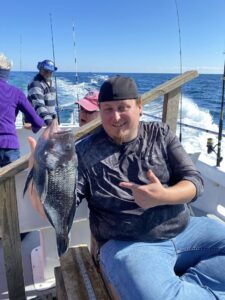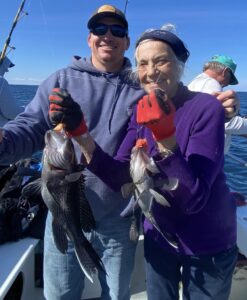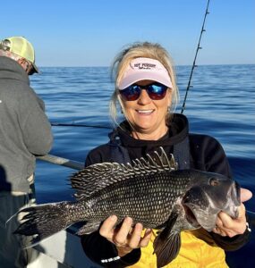 Captain Chris Mizurak of the Angler had a slower start to the day today, but it picked up nicely as the day went on. There were lots of nice sea bass, some big flounder and even a small mako shark that was caught, brought on board safely and released unharmed.