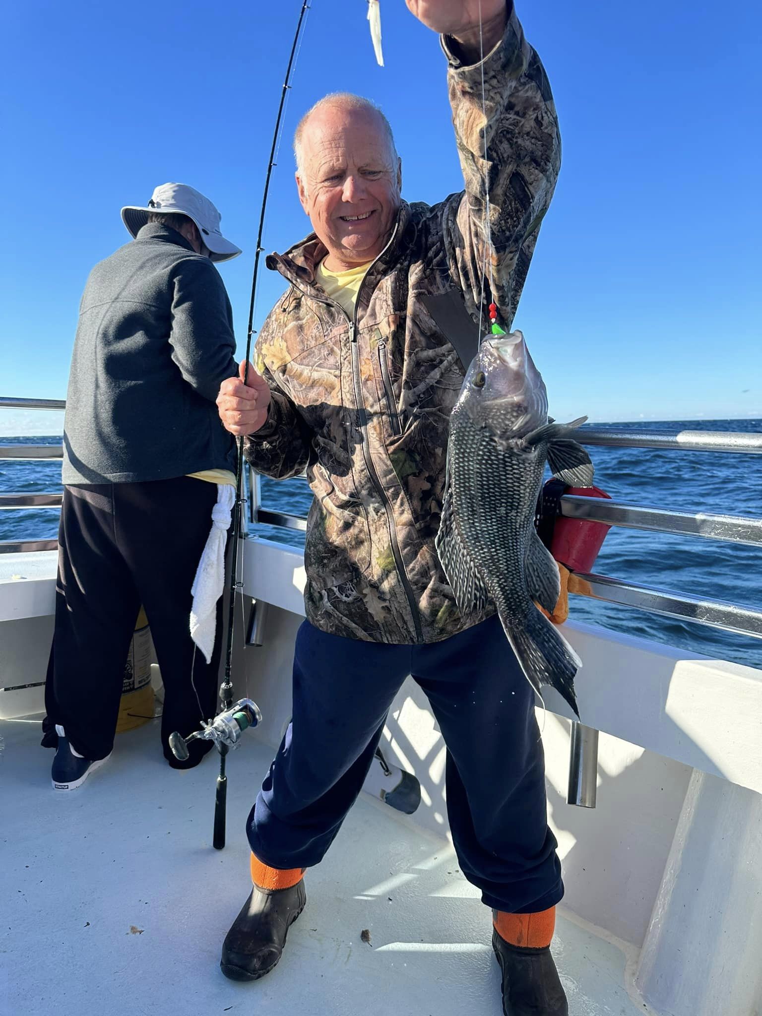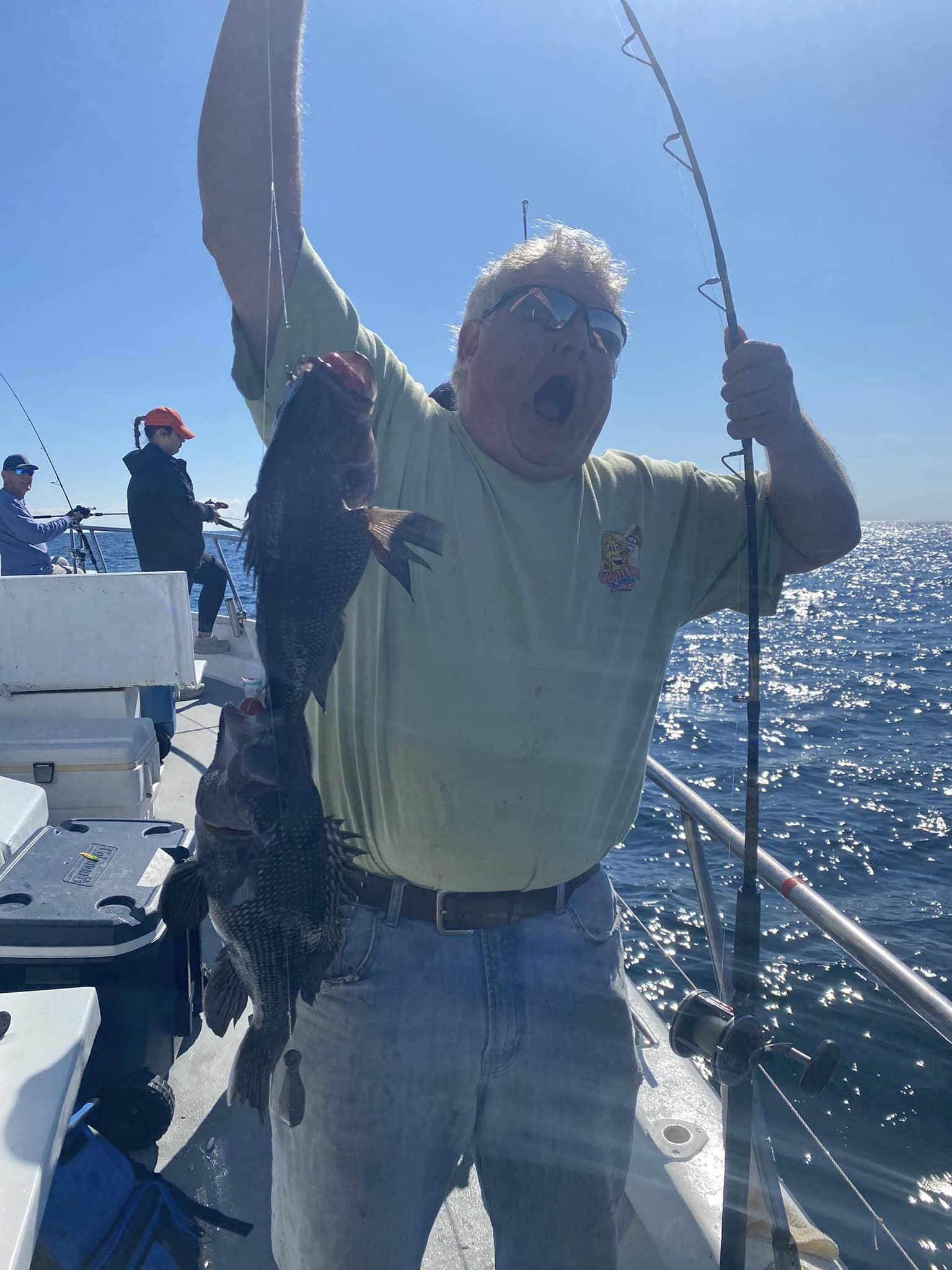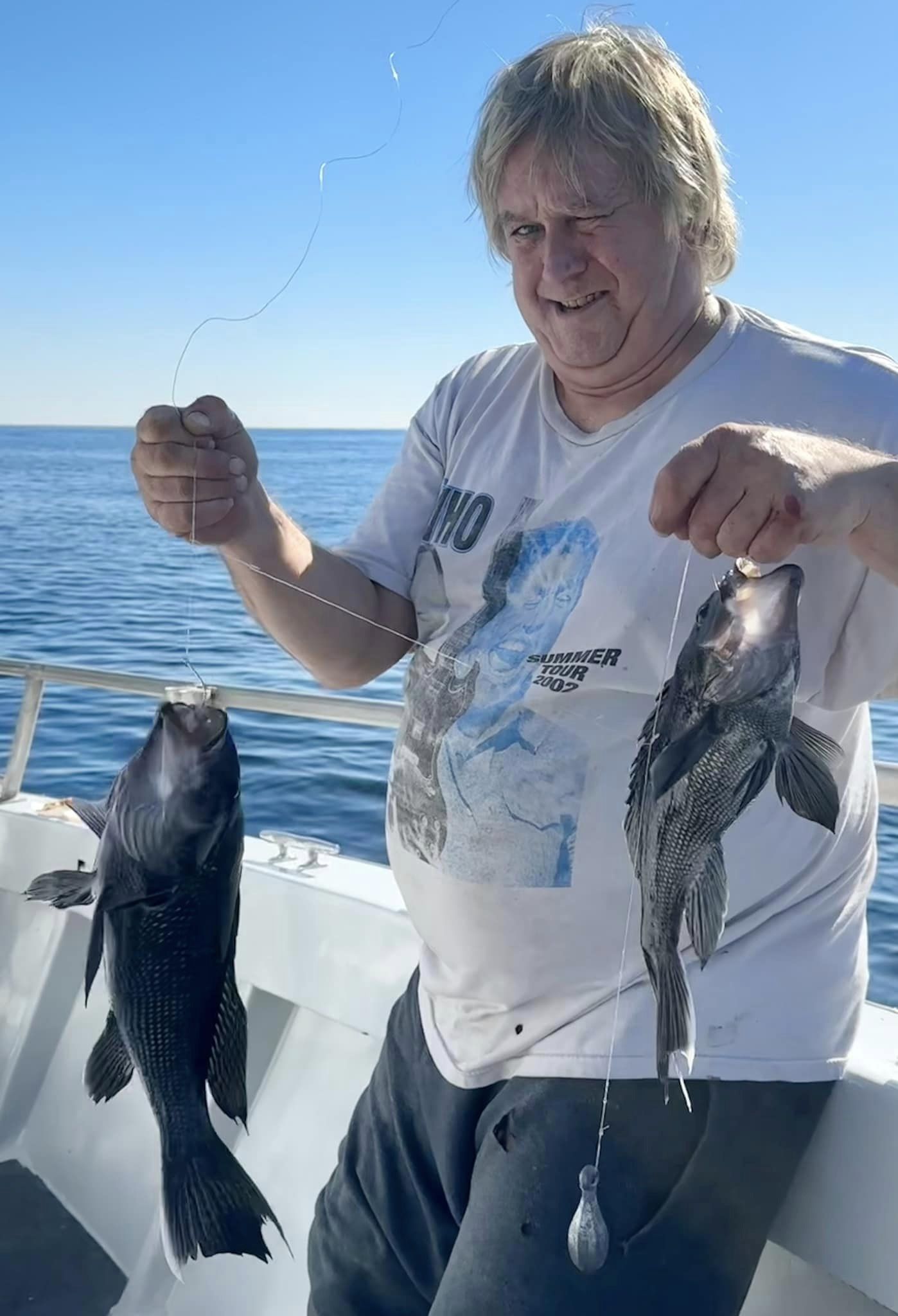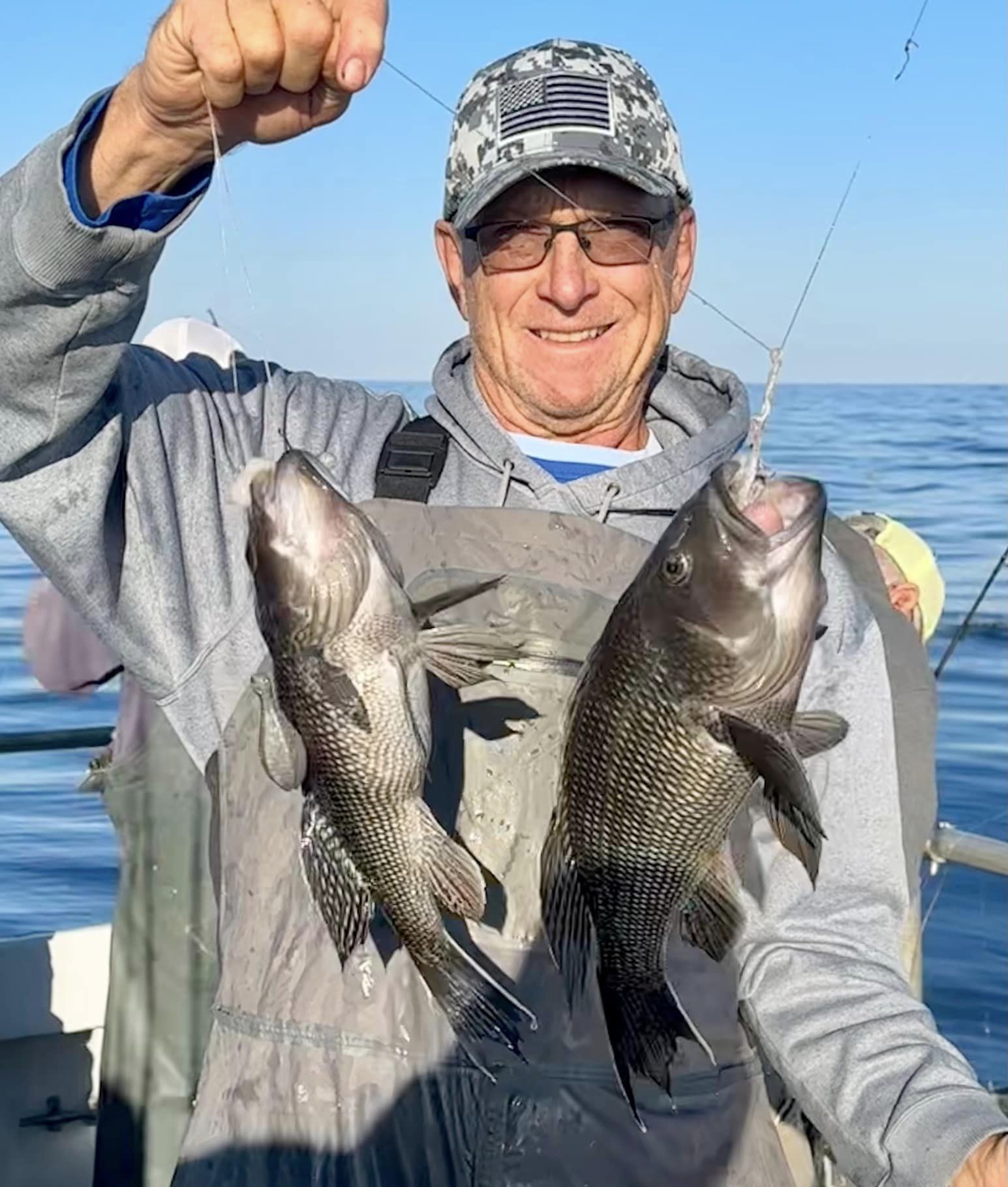 It took a little while longer today than it did yesterday, but Captain Monty Hawkins of the Morning Star treated his rail to another boat limit of sea bass.