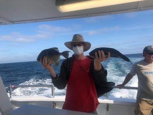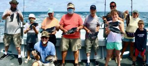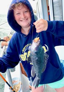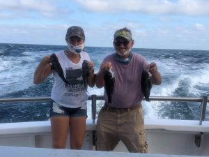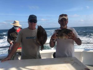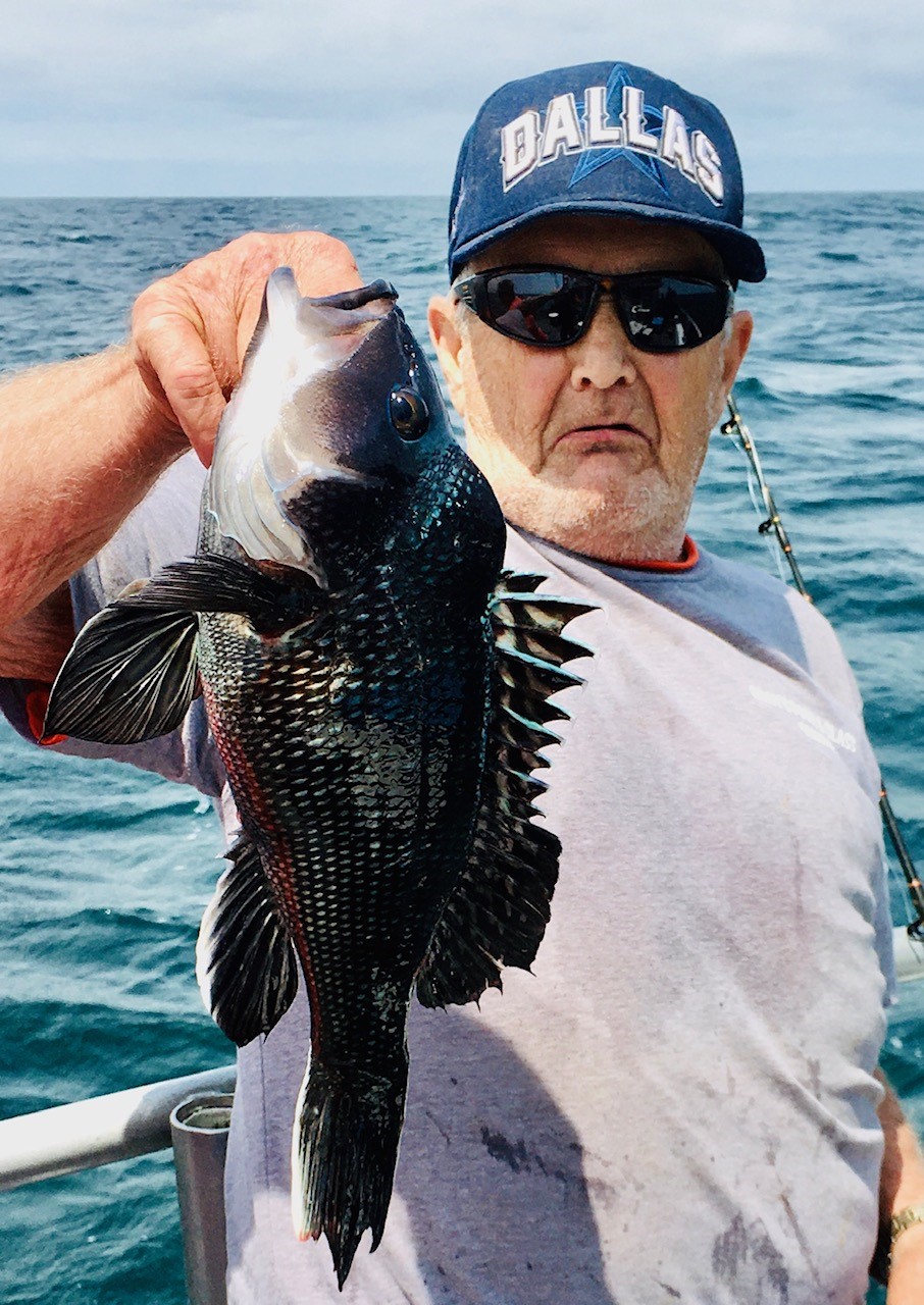 Captain Chris Mizurak of the Angler reported that he had to stick a little closer to the beach than he would have liked, but he was still able to show his anglers some pretty good fishing with sea bass and some triggerfish.