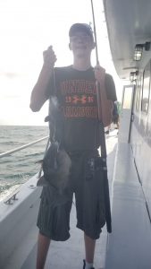 This young lady was the lucky pool winner on board the Tortuga with Captain Drew Zerbe and mate Serge Garder.