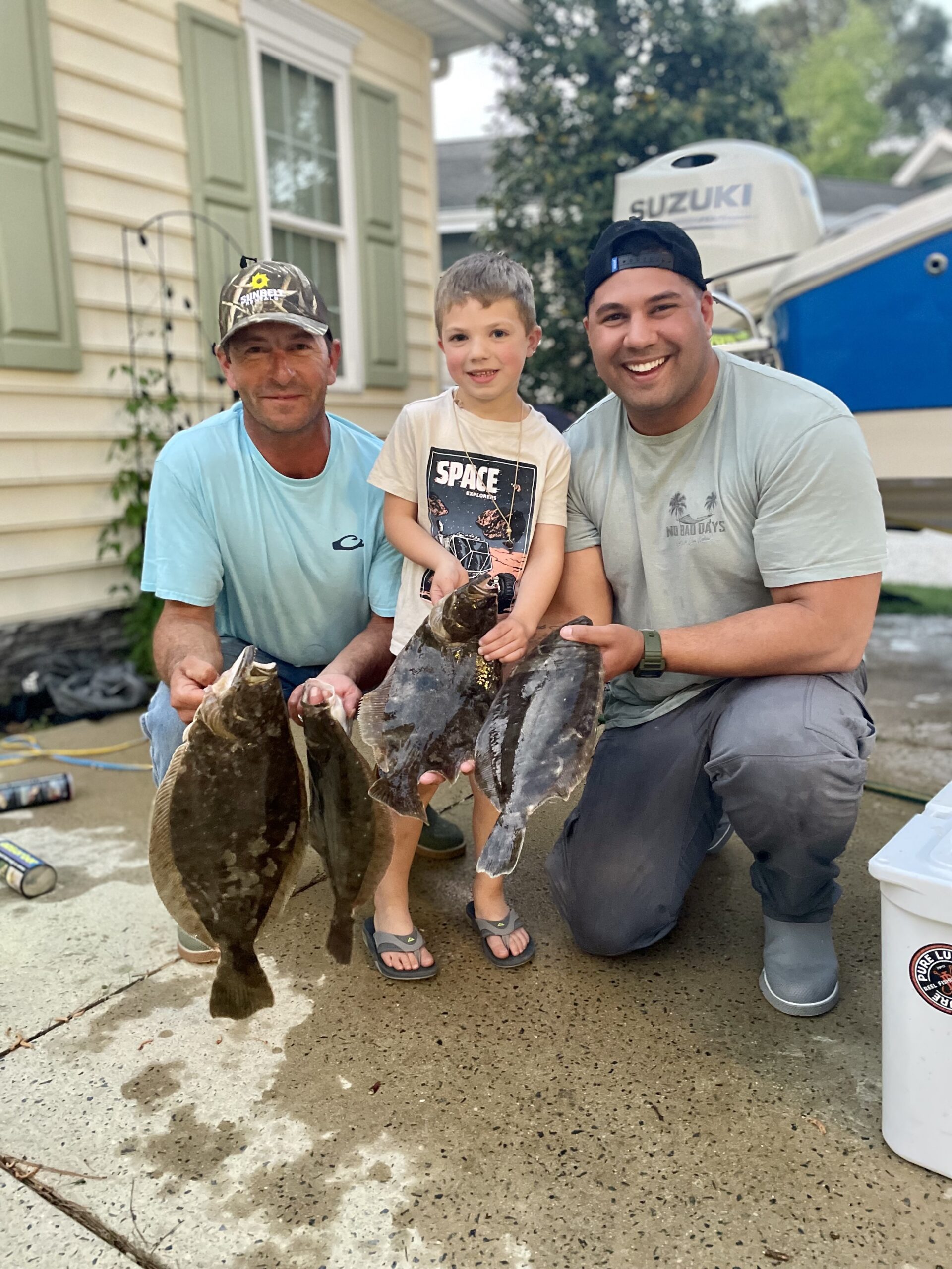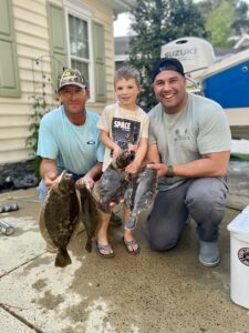 Bryan Athey, Brian Smith, Brian Mills, Zach Handy and Caleb Handy caught four keeper flounder behind Assateague Island on hand tied rigs with live minnows.