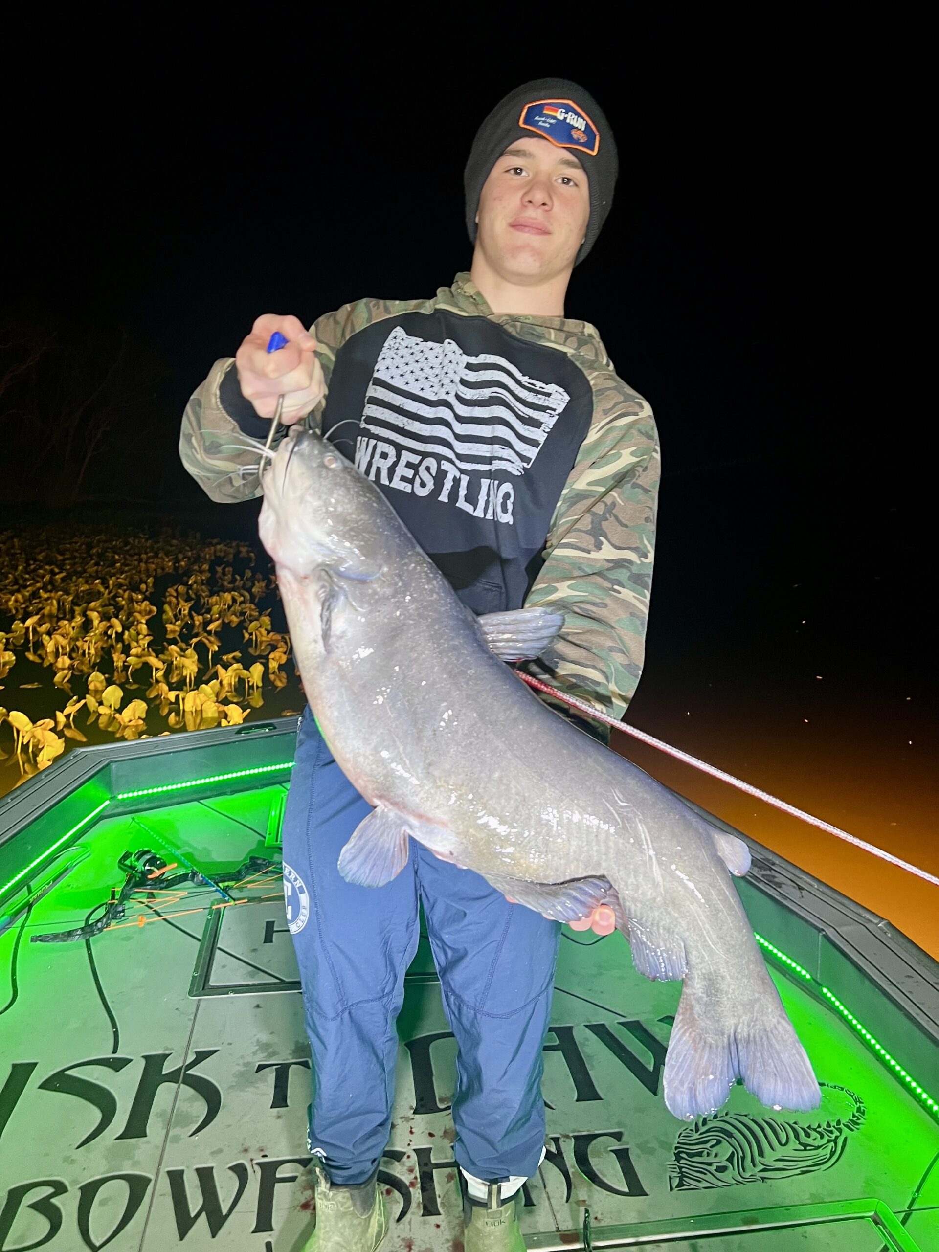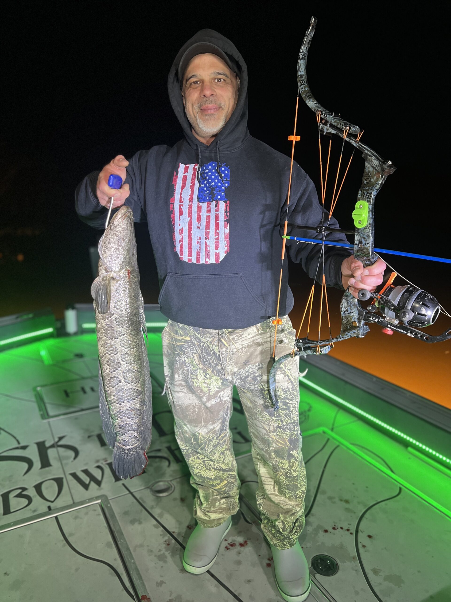 Captain Marc Spagnola of Dusk to Dawn Bowfishing had a productive night of shooting for his guys last night putting them on some quality snakeheads and some big blue catfish.