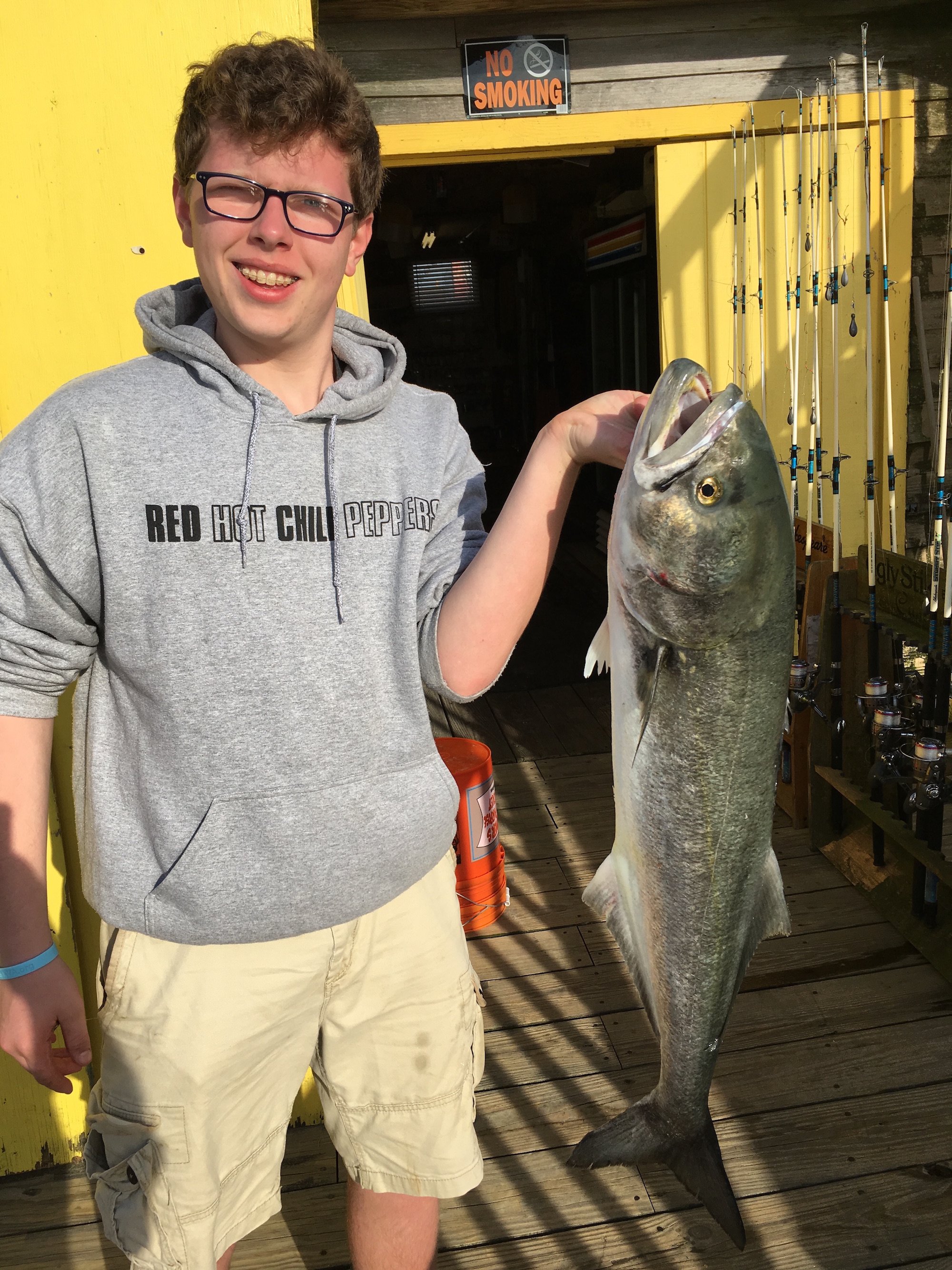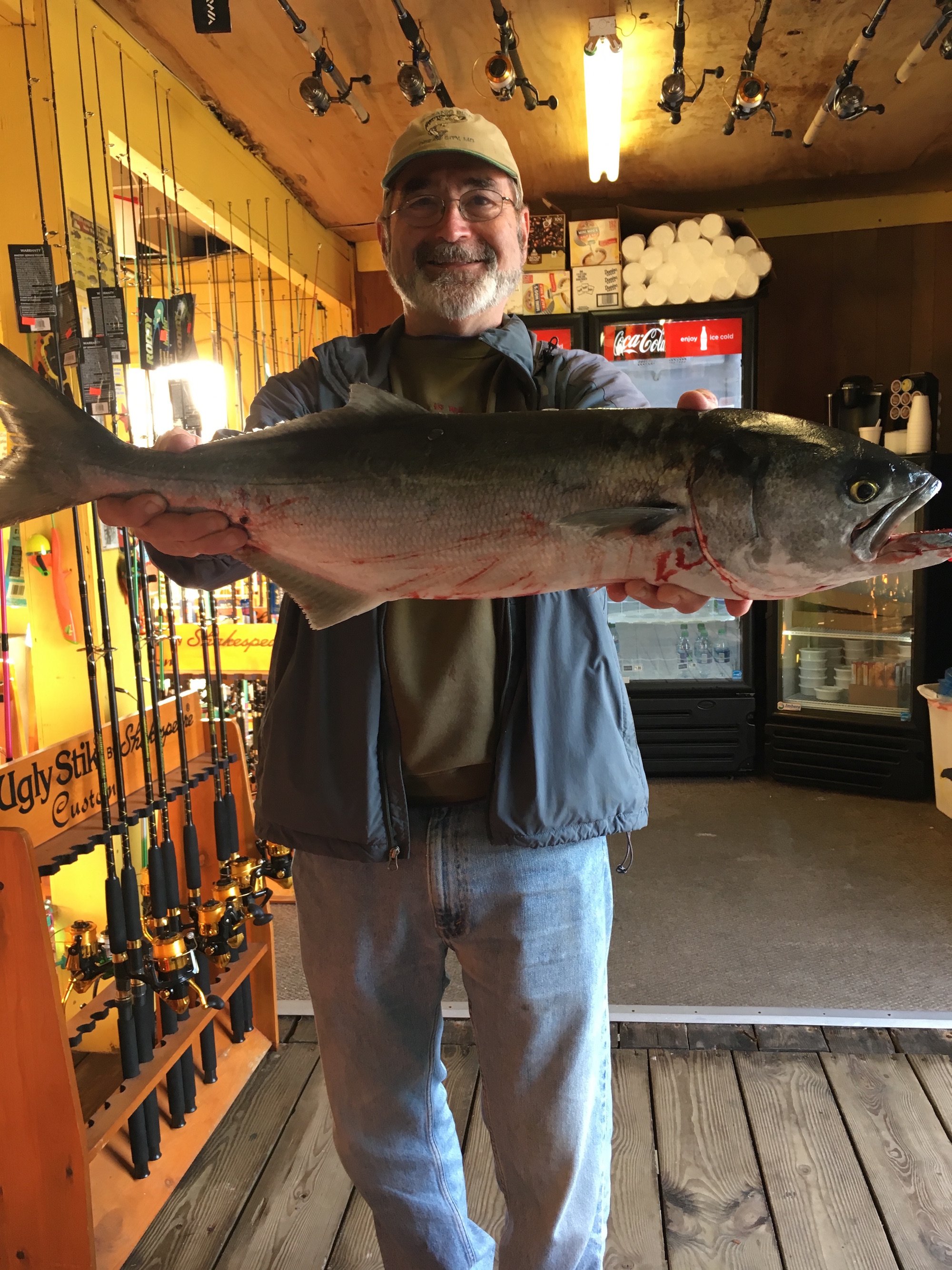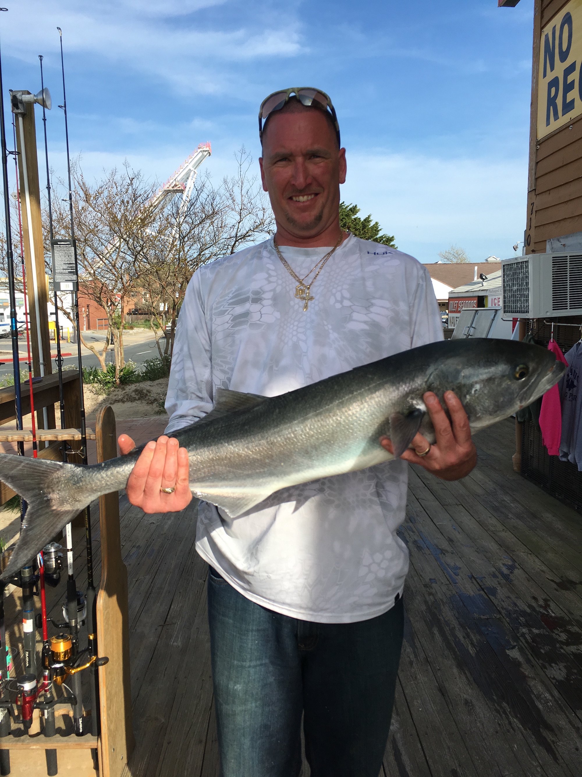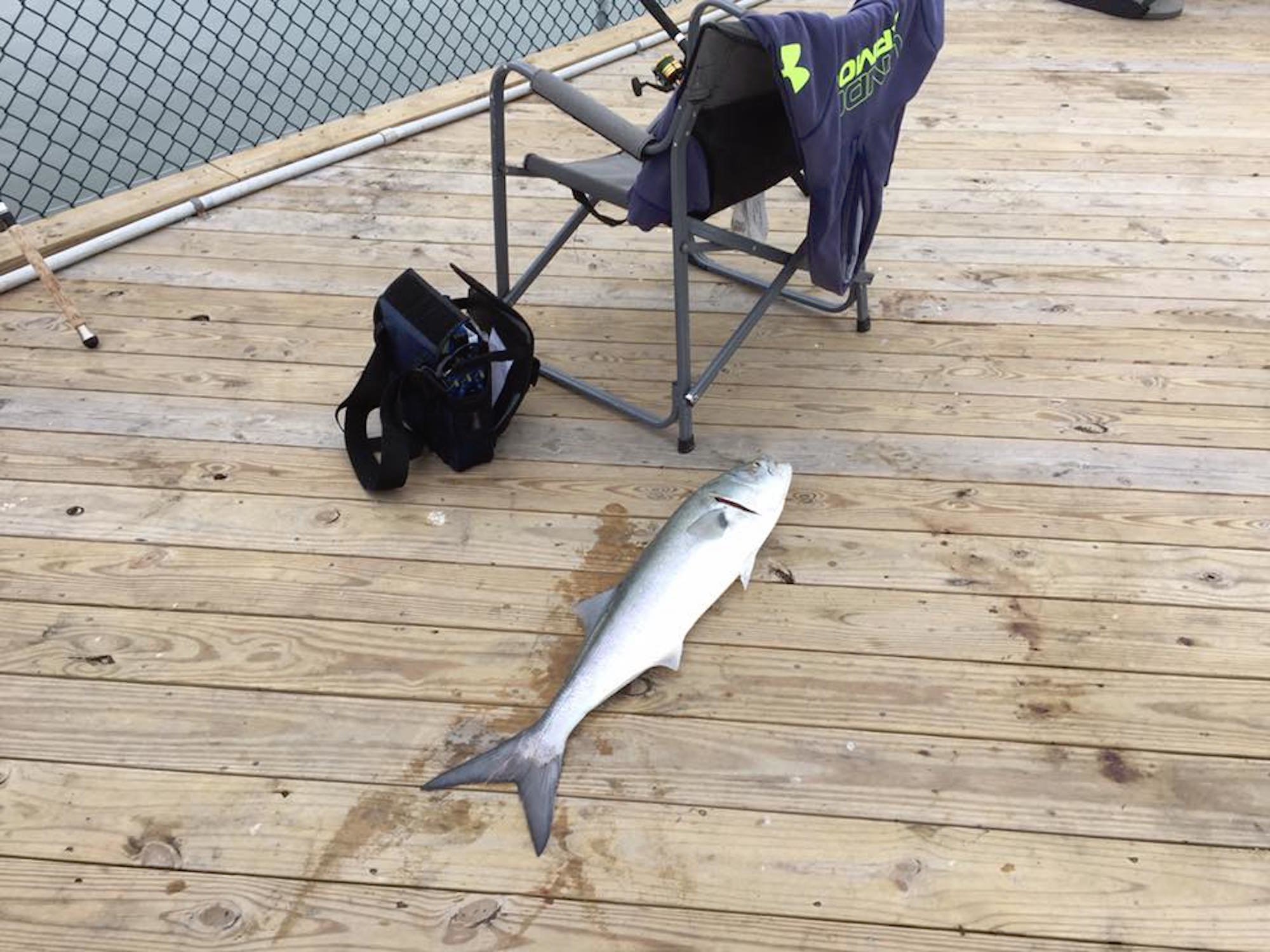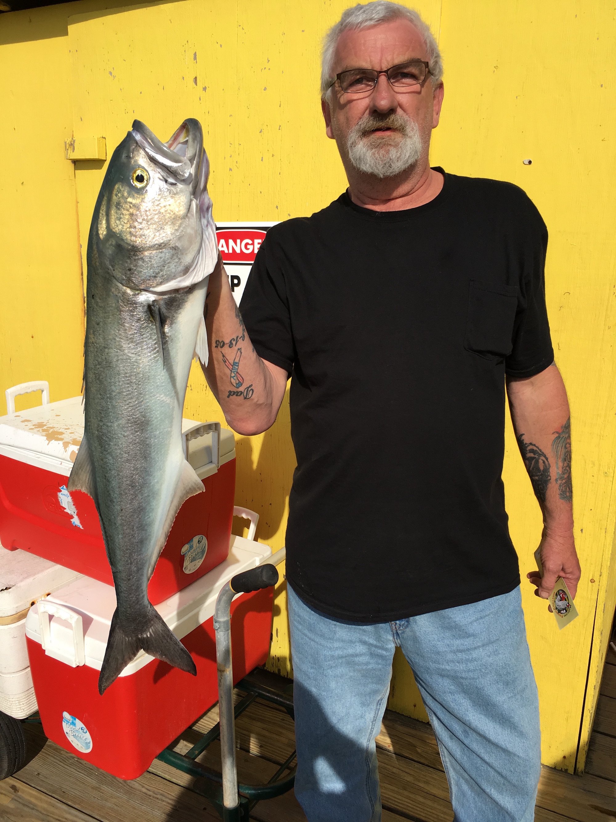 A couple of Facebook submissions hit the page yesterday with some photos of nice bluefish from the area. Cayman Man shows that the action at the Oceanic Pier has been hot, and John A Fredericks Jr. said the big blues were all over the Cape Henlopen pier as well…..literally.