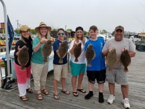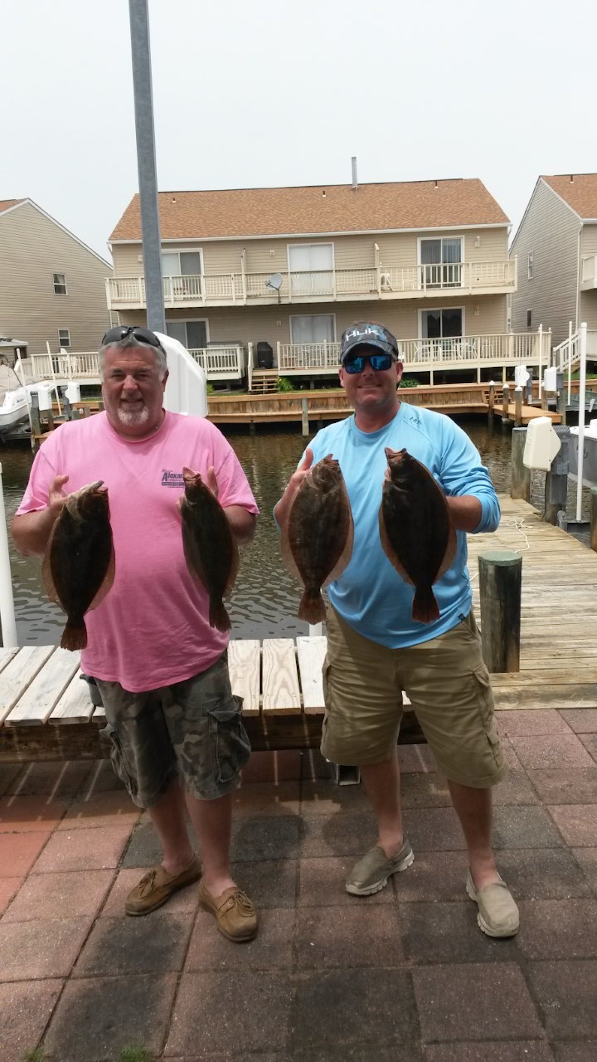 The Tortuga with Captain Drew Zerbe at the helm had a good afternoon trip for flounder today.  Captain Drew had the Tortuga in the south bay and ended up putting his anglers on some nice fish between 16 1/2″ and 17 1/2″.  Mate Serge Gardner helped everyone with the net and shiner/minnow and squid combos that got the job done.