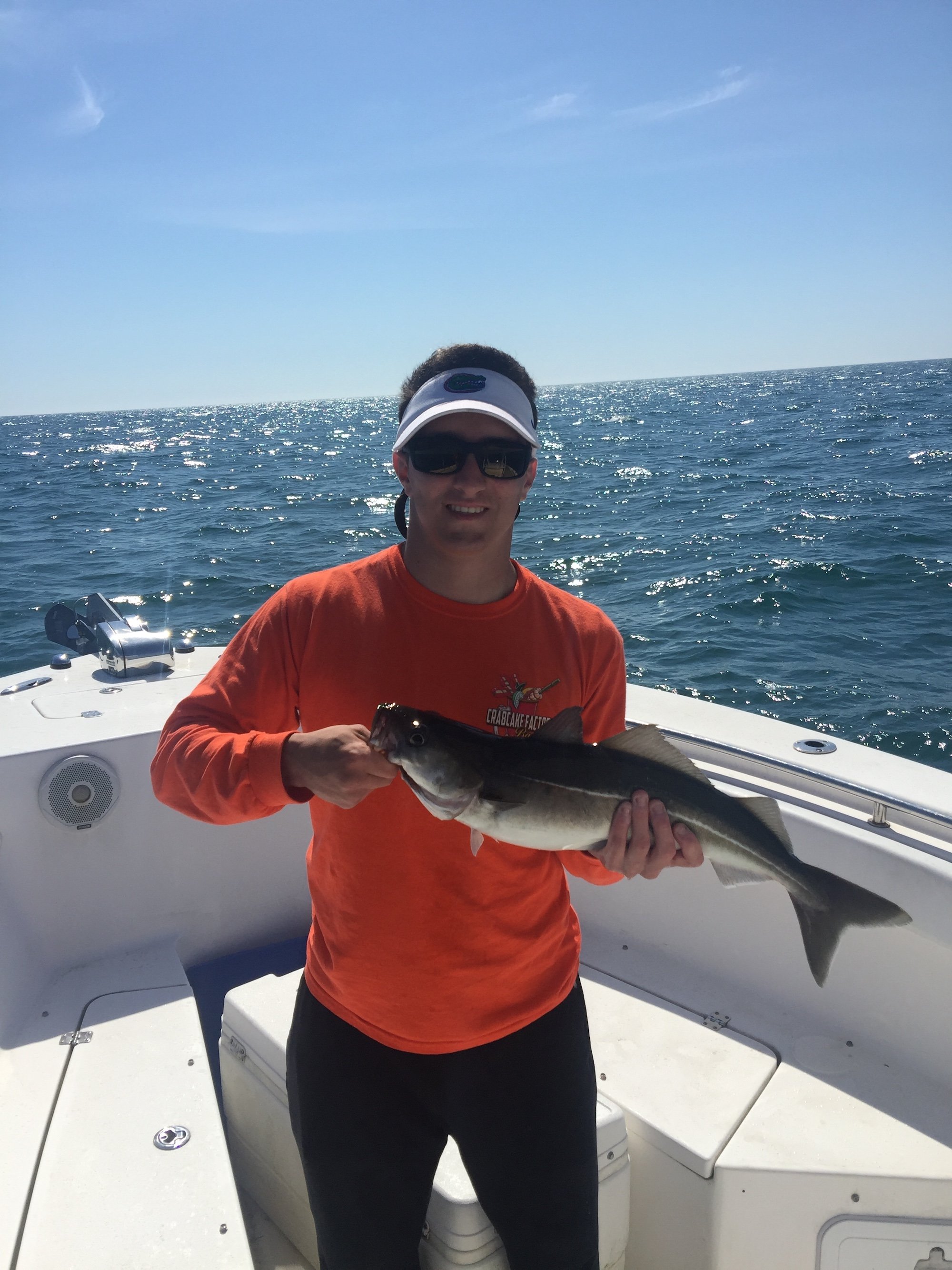 On Friday, Paul from JPR Rods had Blake and Jacob Gunther on the boat for some bottom bouncing in 100′ of water.  It was drop and reel sea bass fishing for the crew and they also landed this surprise 22″ keeper cod.