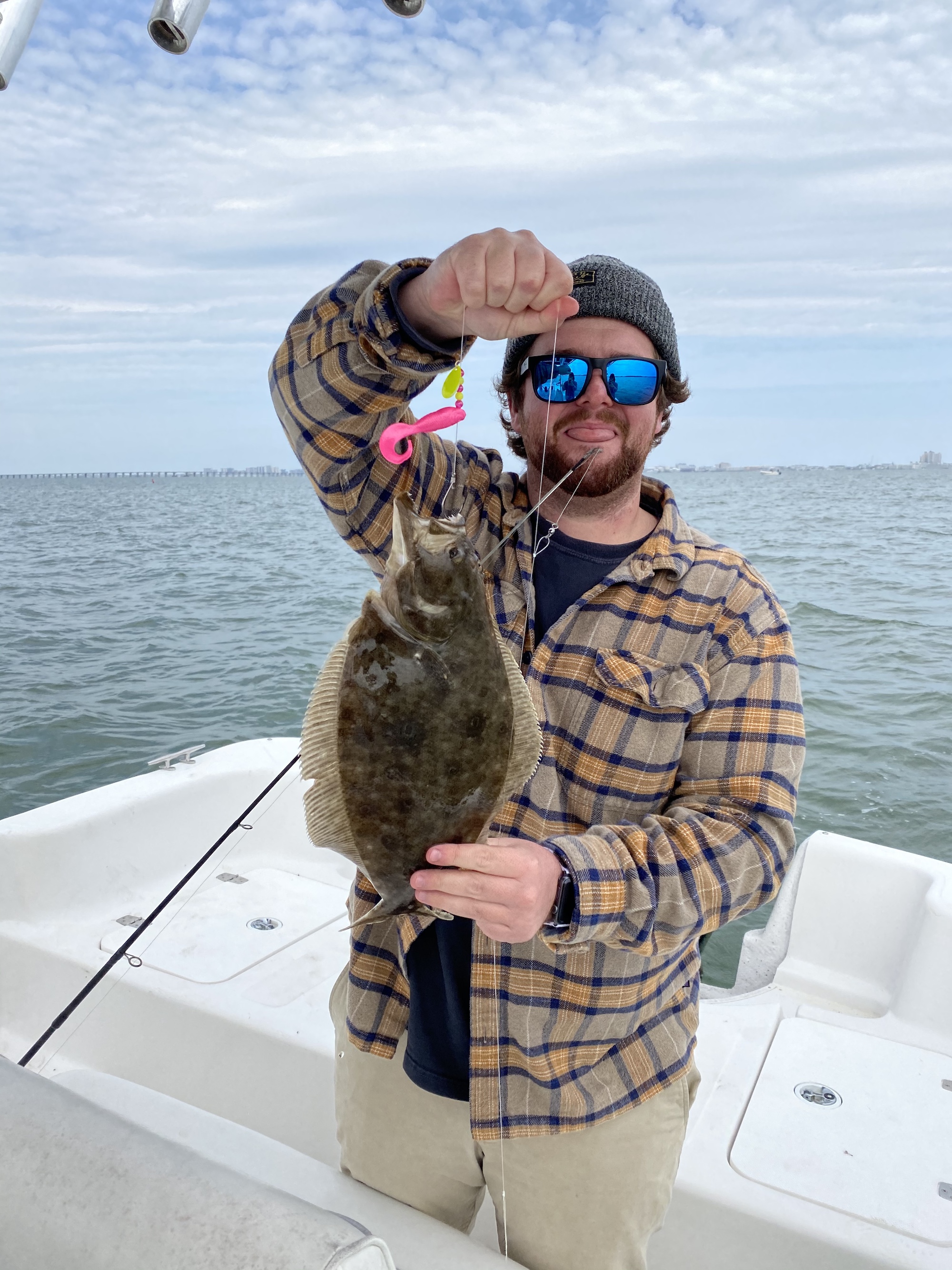 My good buddy Matt Krall fished with Brody Shockley today on Matt’s dad’s boat the Kralldaddy and had a great day with the flounder. Matt and Brody had three Paralichthys Dentatus (Matt’s dad Jim is a marine biology teacher) that hit the legal length at 16 1/2″, 17″ and 18″. The guys took “Mr. Scott’s” advice and used Deadly Double’s with pink gulp to put the fish in the boat.