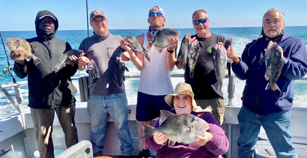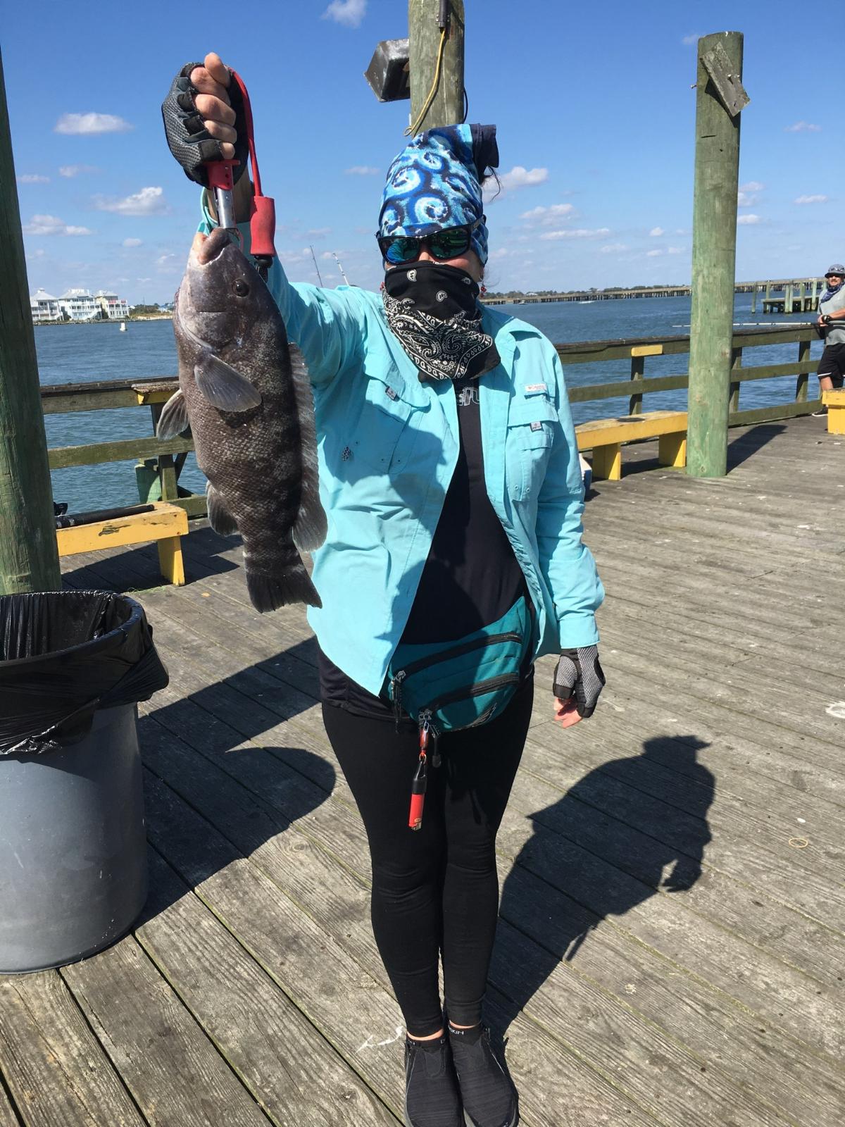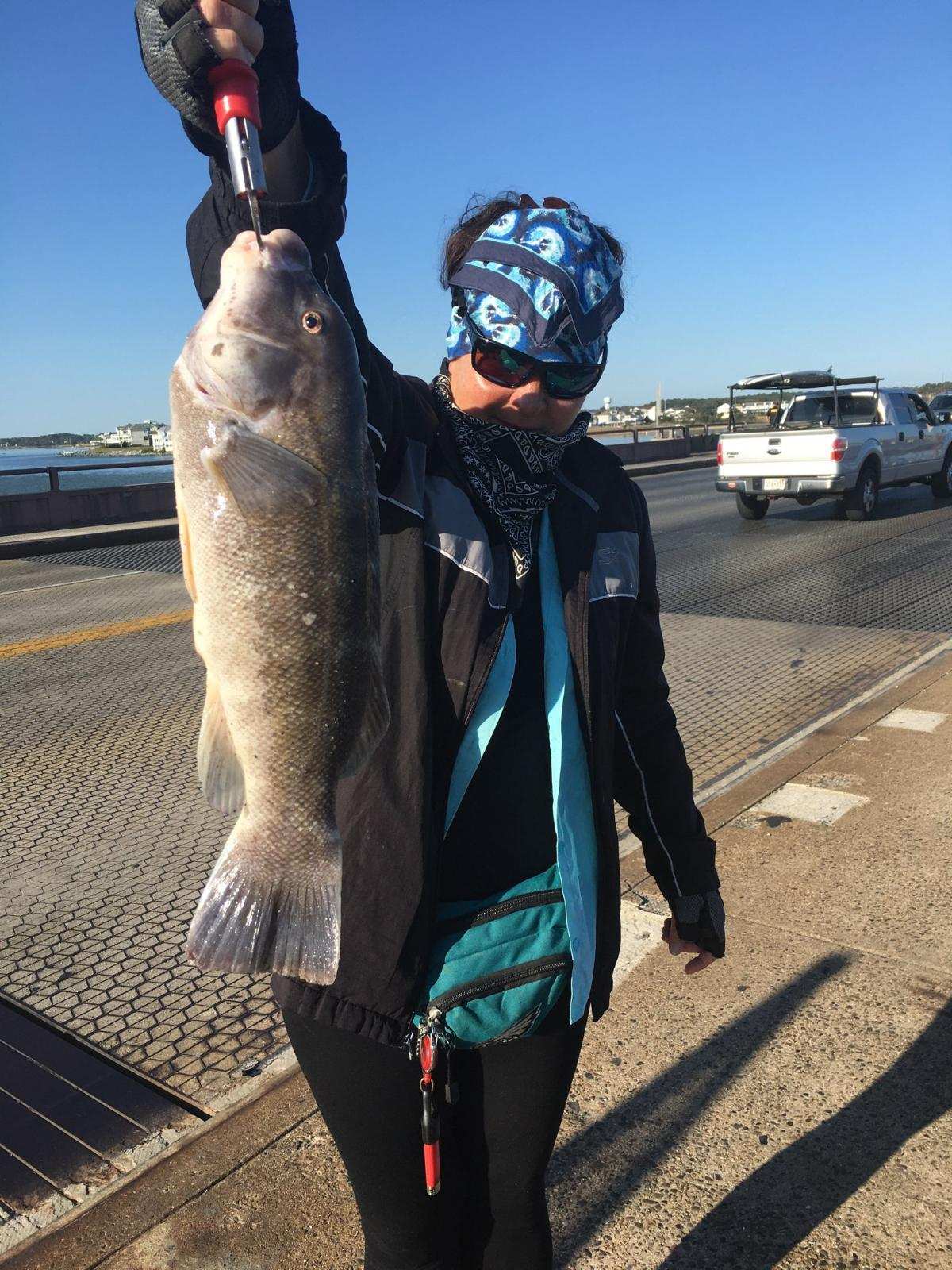Chrissie fished the route 50 bridge this morning for her first keeper tautog and then hit the Oceanic Pier for her 2nd of the day.