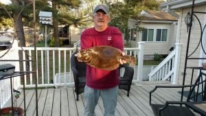 Flounder fishing was pretty good in the bay today with some fish being caught in the Thorofare flats again. There were also some fish caught from behind Assateague Island today which is a good sign that the water may be cleaning up back there. Steve Gittner caught this 22″ keeper behind the airport this afternoon.