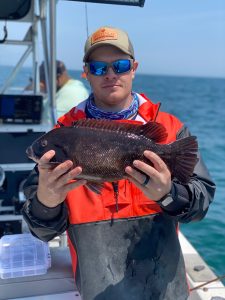 Captain Chase Eberle of Chasin’ Tides Charters was in the ocean today as well and he too put his anglers on a boat limit of sea bass. Captain Chase then ran and caught and released several tautog that would have been keepers (season is now closed through June 30).