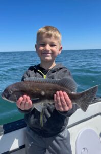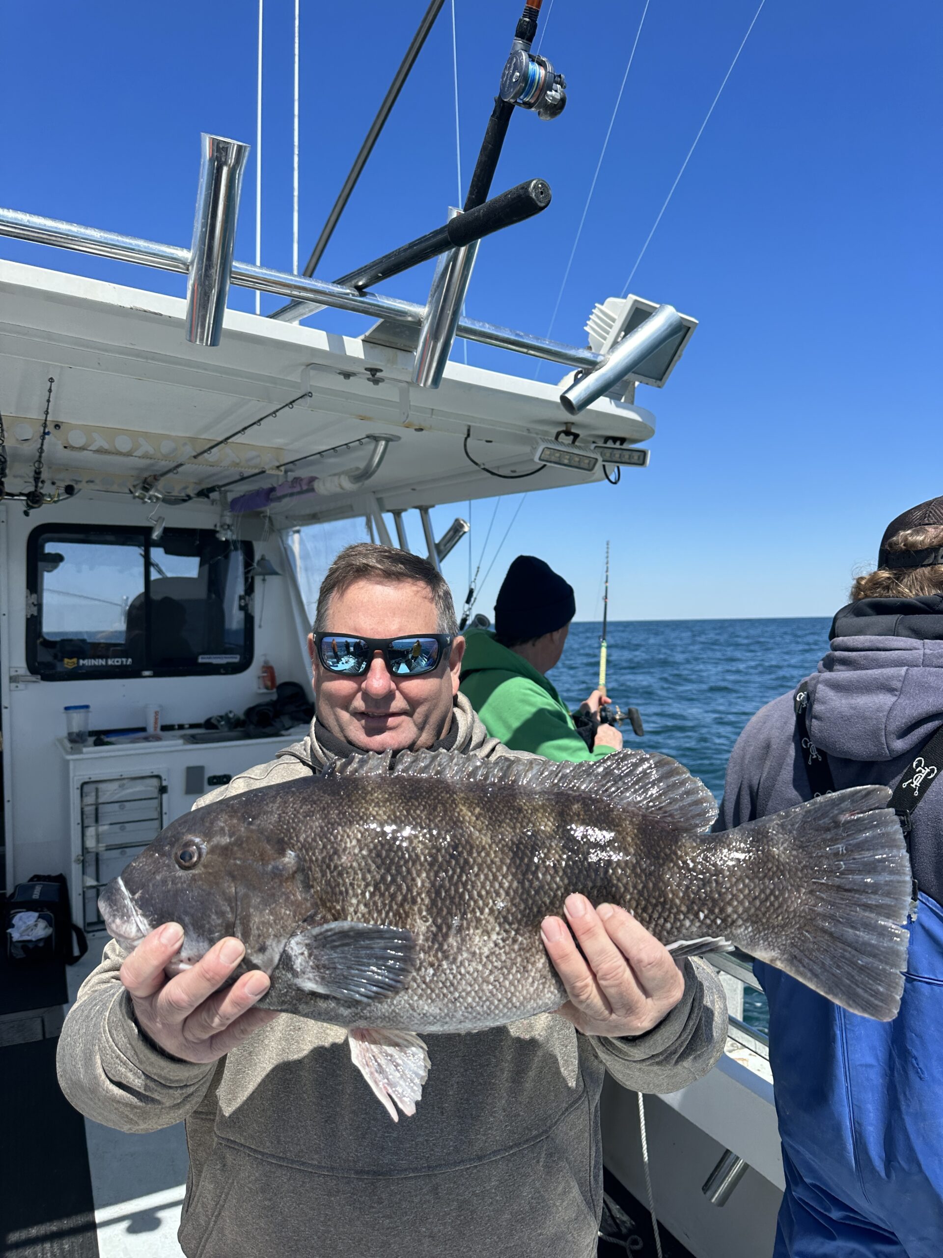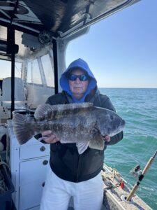 Captain Chase Eberle of Chasin’ Tides Charters had a nice day of tautog fishing on the ocean today as well with some big fish ending up in the net and some young anglers getting in on the action.