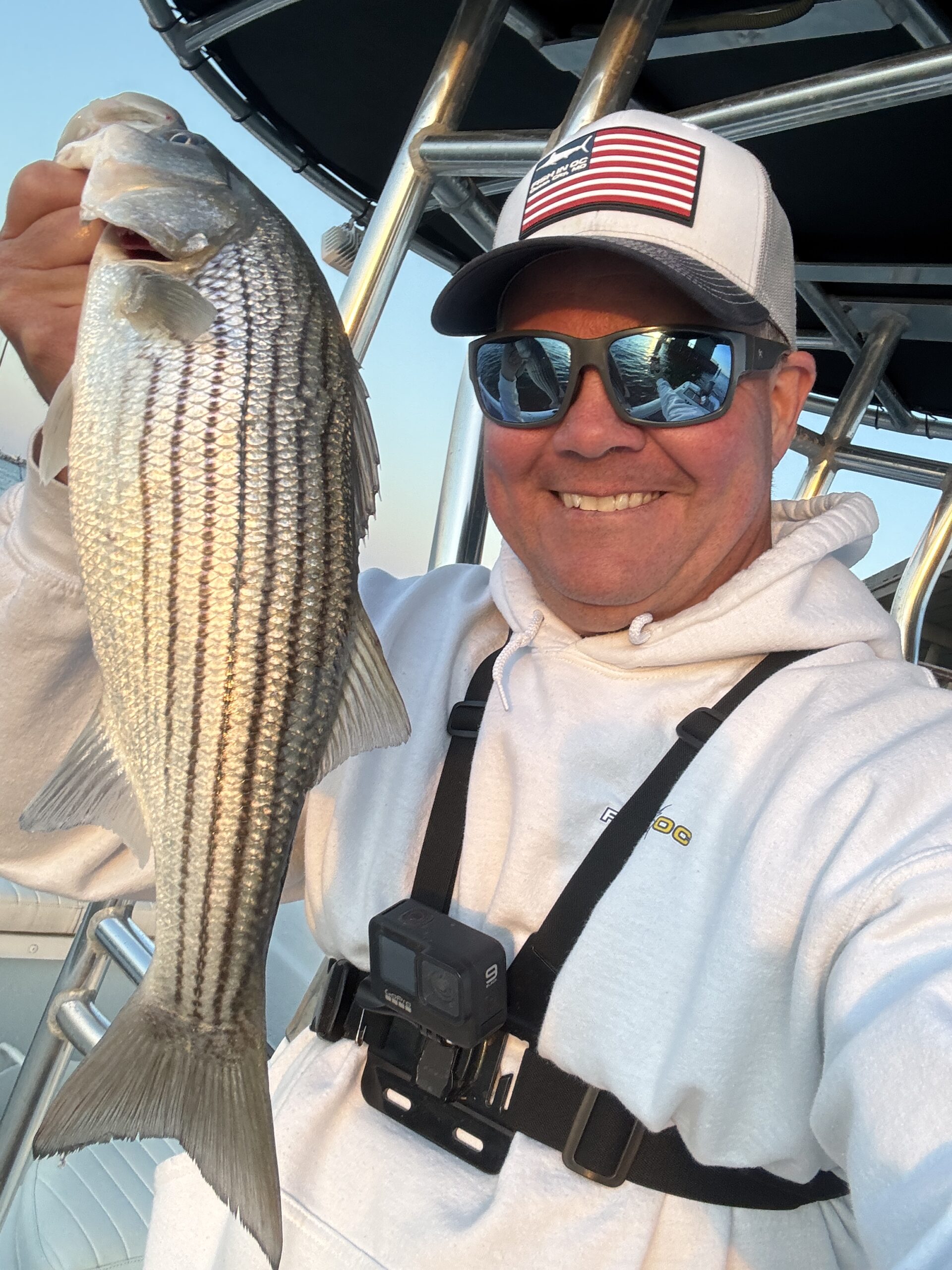 It was a nice Spring day today in and around Ocean City with temps in the upper 50s, sunny skies and lightish winds. It was a nice day to get on the water in a sweatshirt and get on some of this fishing that’s picking up every day.