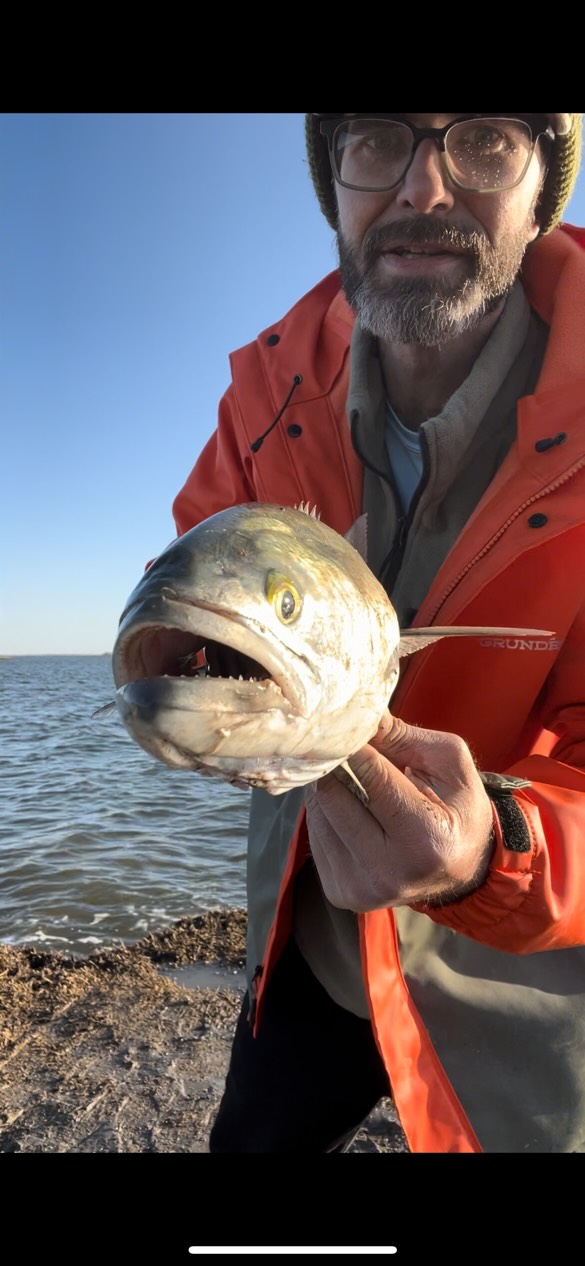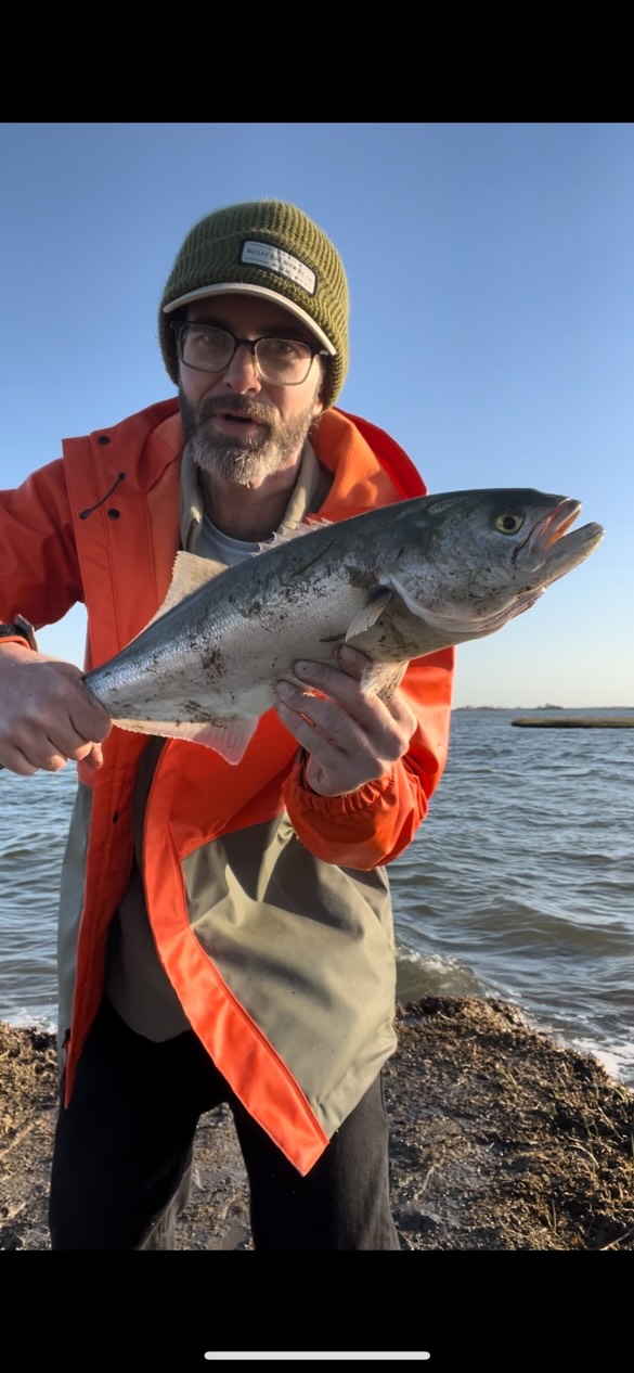 Taylor Bakke of Always Bent Fishing found the first bluefish that I’ve seen this year behind Assateague Island when this “snapper” sized fish ate a swim shad.