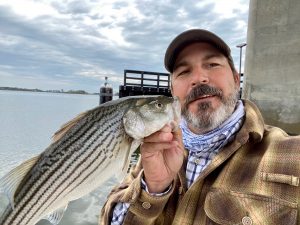 My buddy Eric Windrow fished the west span of the route 90 bridge this morning in some nice conditions and had some fun with the rockfish even though none of them met the 28″ minimum.