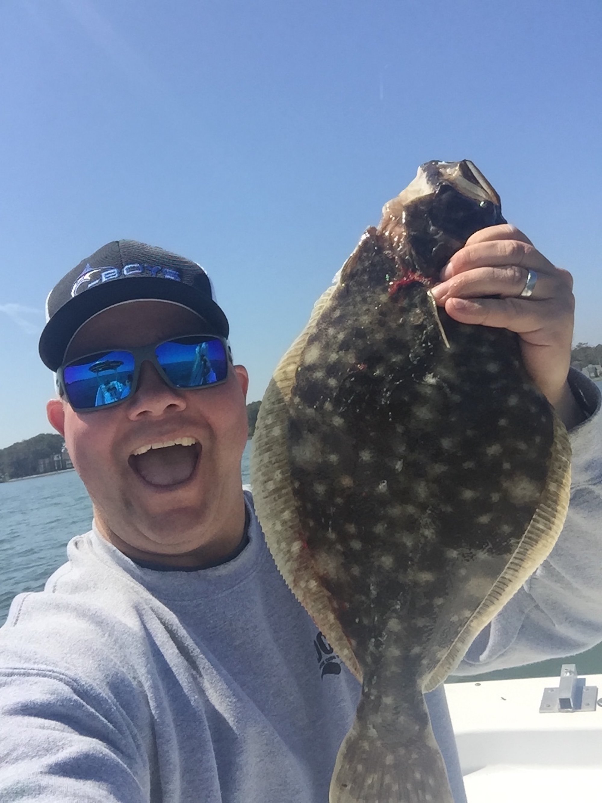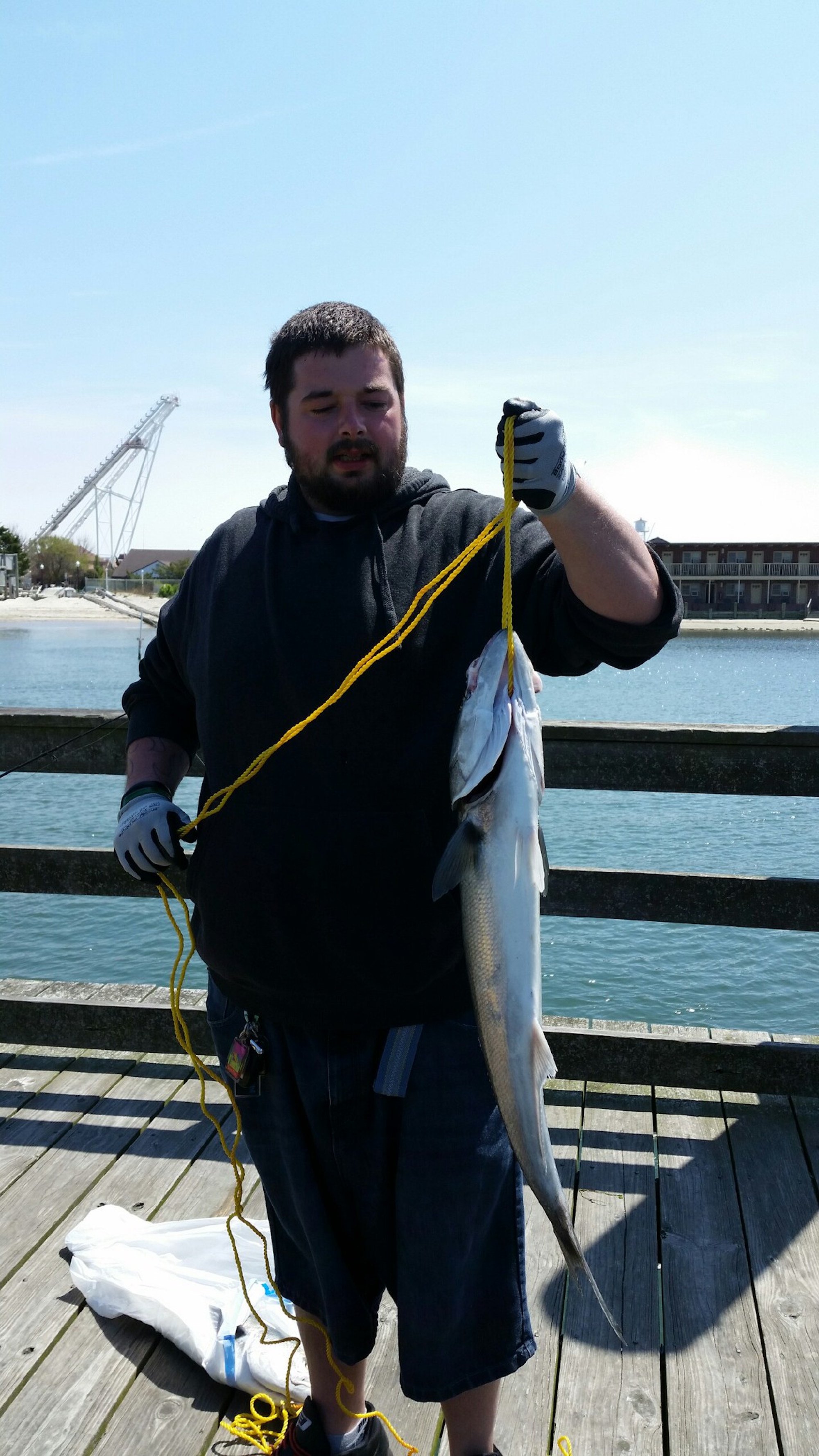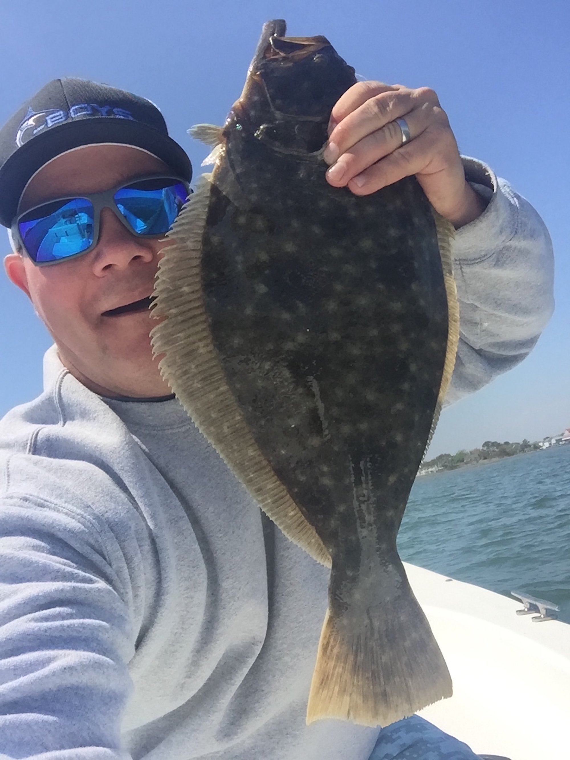 It was sort of a strange weather day today around Ocean City. The wind was blowing pretty good out of the northeast which pushed a fog bank over town, but less than 1/4 mile to the west it was sunny and beautiful. It was nice enough that there were some anglers out on the bay trying their luck….and I was one of them.