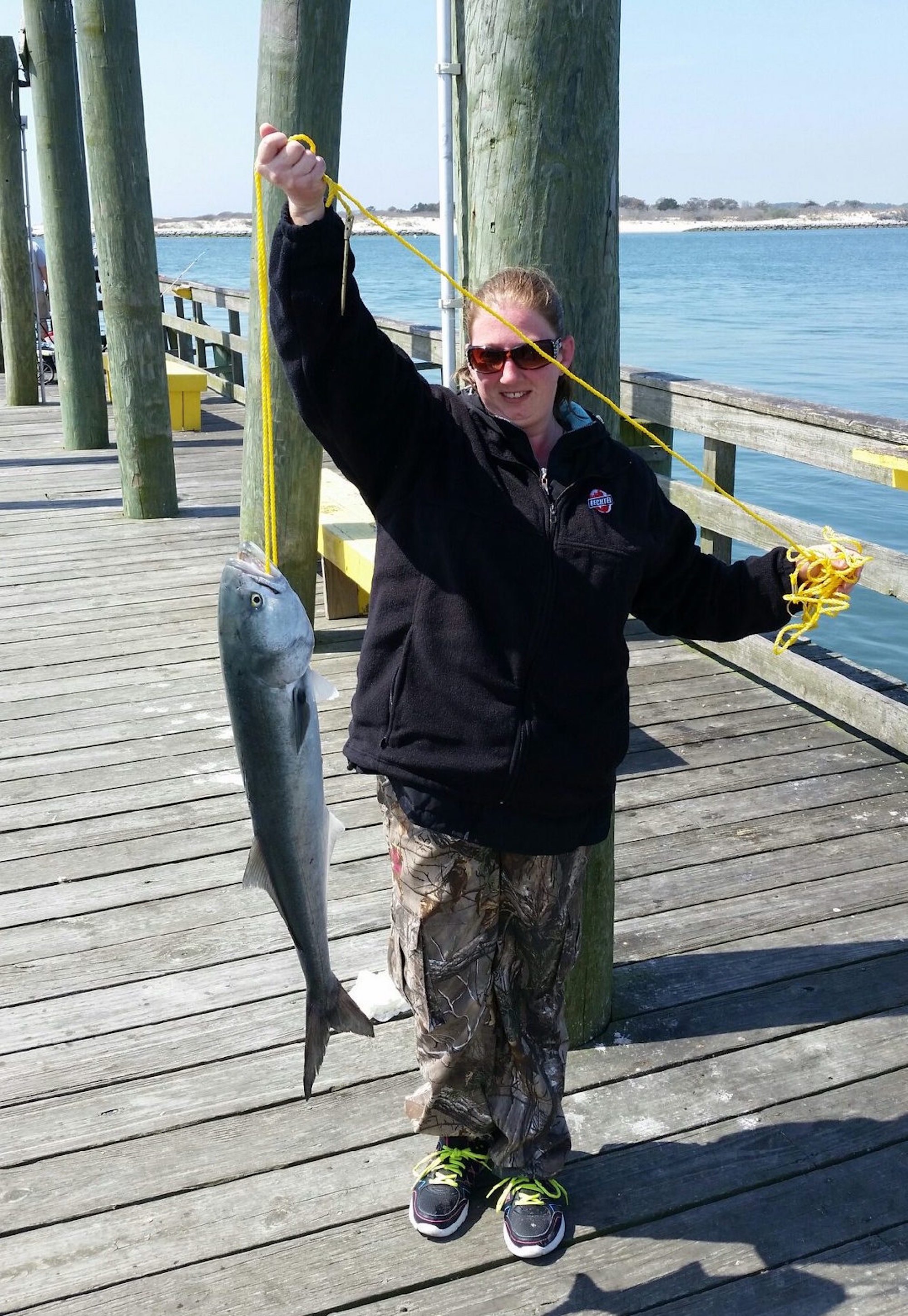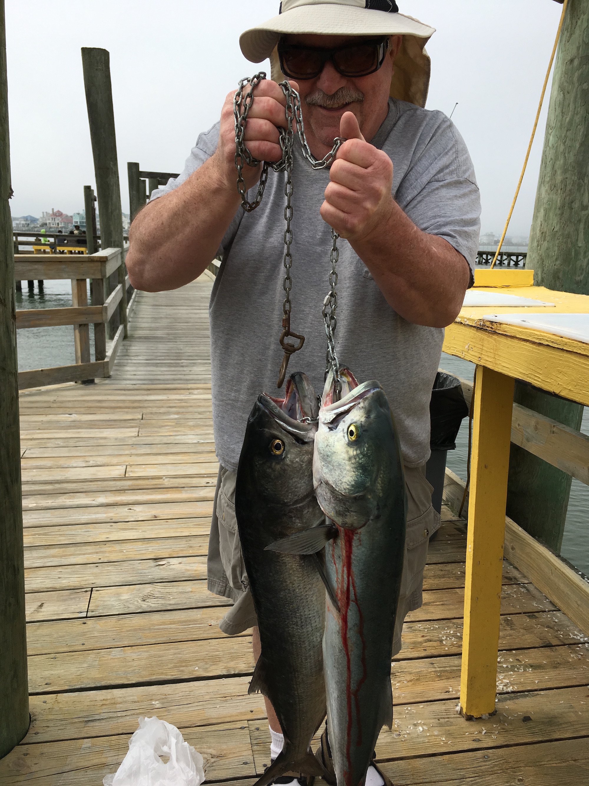The bluefish bite at the Oceanic Pier is pretty awesome right now with some nice, big fish being caught. Wayne and Brandie from Thurmont, MD and Les from PA had some great luck today with the big blues on mullet.