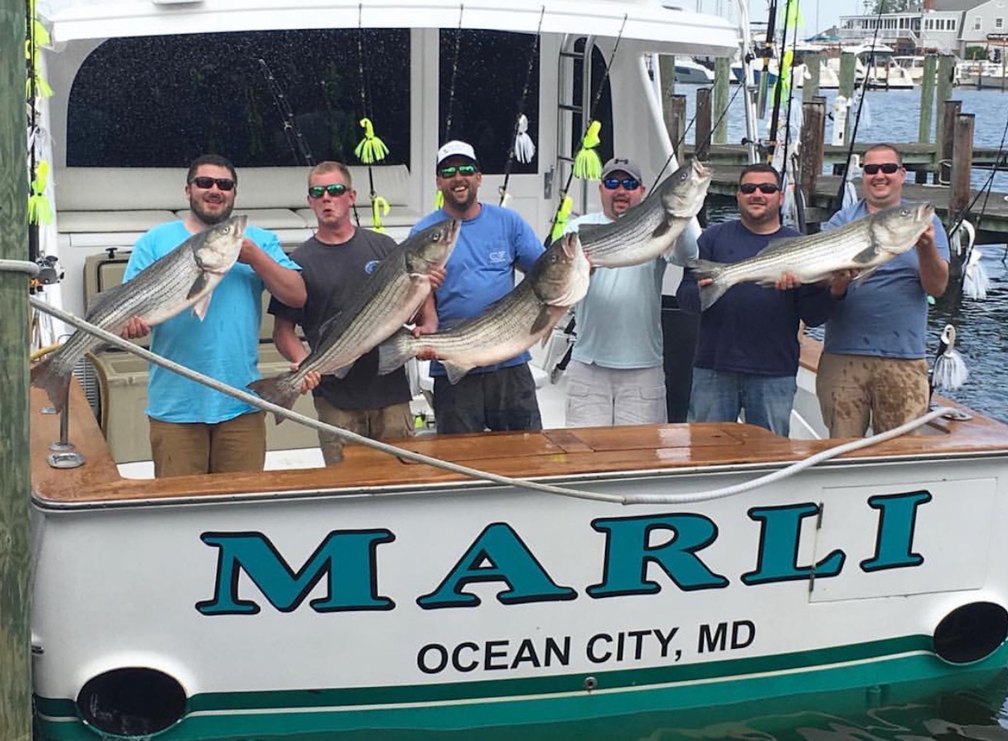 Captain Mark Hoos and mate Mark Stephens had another good trip over on the Chesapeake Bay today. Sam Connors and crew from Lewes, Delaware enjoyed a beautiful day on the charter boat MARLI catching Spring Trophy Rockfish with the largest fish being a big old 37 pound fish.