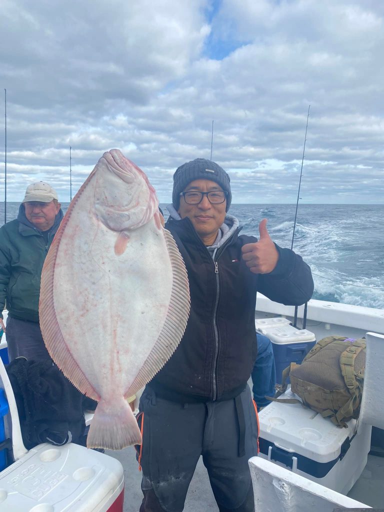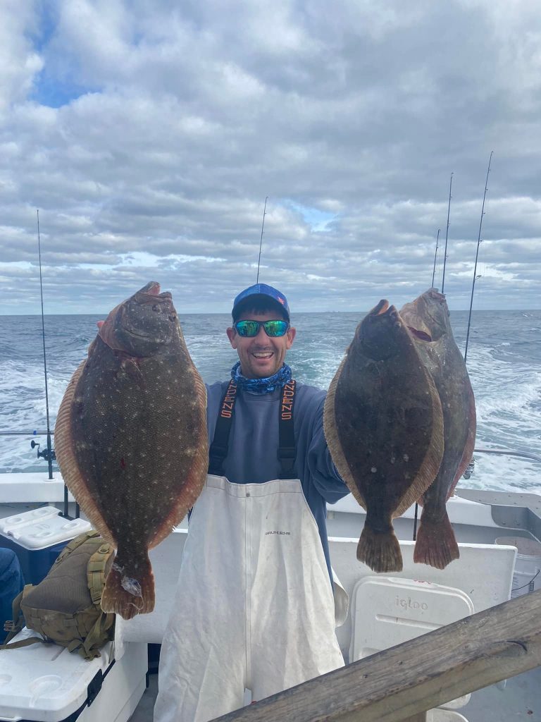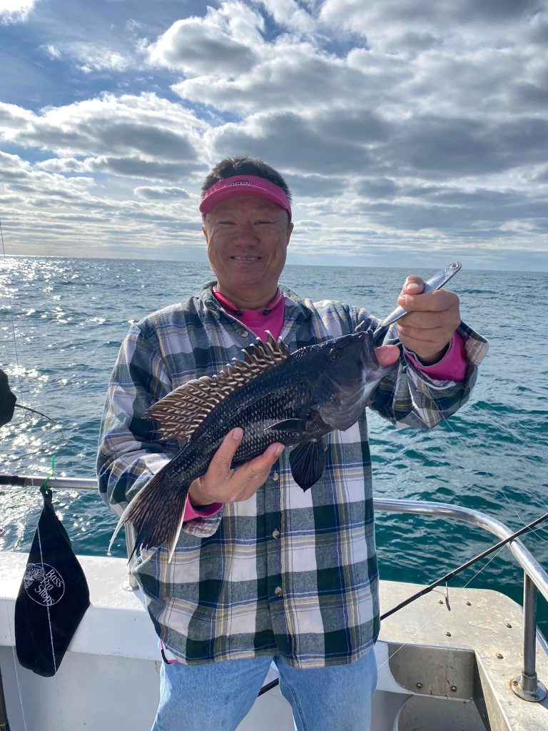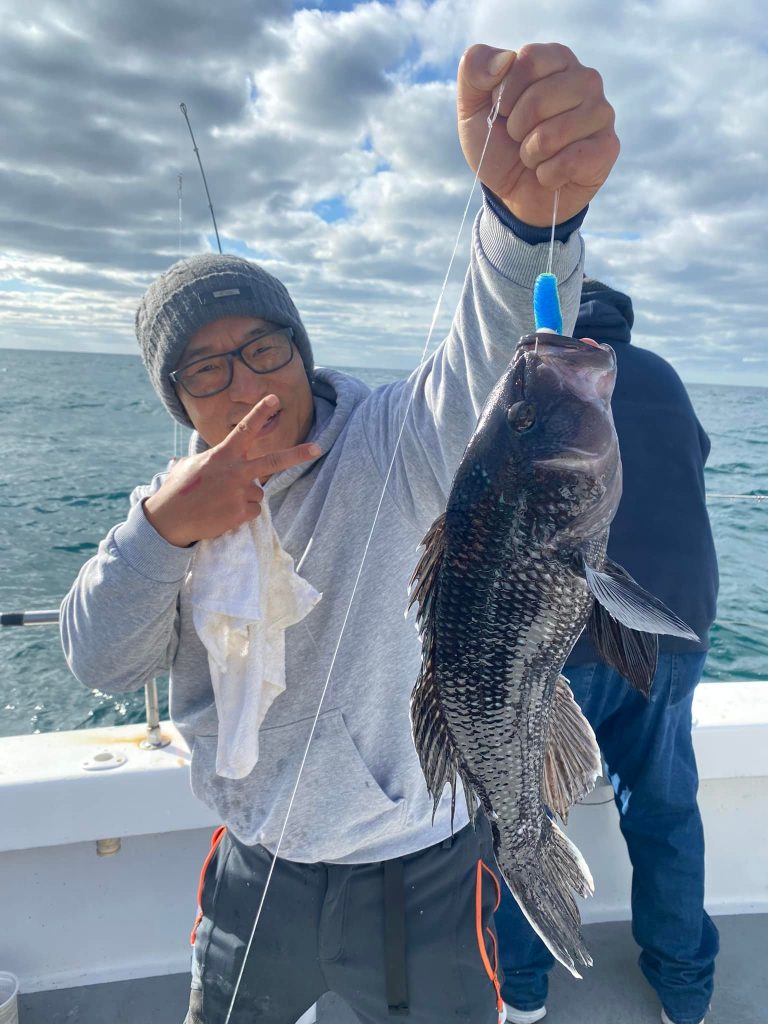 Captain Chris Mizurak of the Angler had a rough ride out this morning, but it calmed down pretty quickly and the fishing was good. Sea bass were flying over the rail today and there were some nice flounder up to almost 7 pounds as well.