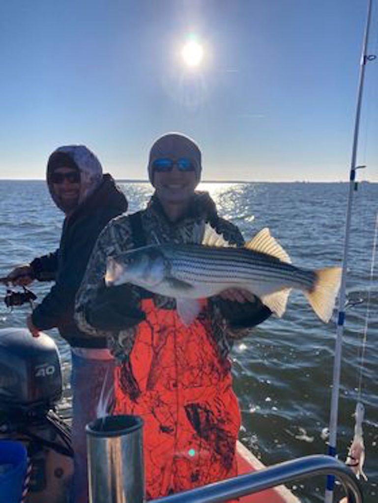 Kevin McNelis and his crew fished the Chesapeake Bay today and caught their limit of rockfish up to 26″. They also released another 40 fish on the jig.