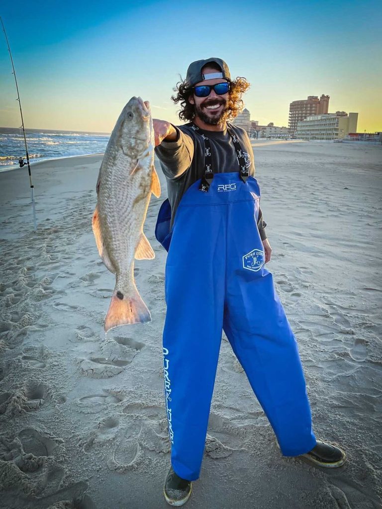 Brendan Madairy fished the Ocean City surf in his Pure Lure bibs and landed a beauty of a red drum at 22.5″.