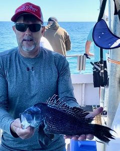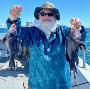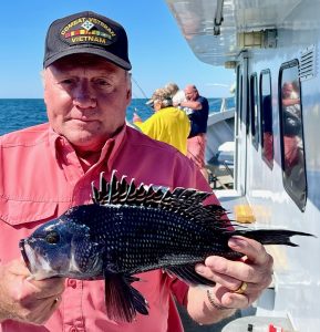 Anglers on board the Angler with Captain Chris Mizurak had some good fishing today with plenty of sea bass and some nice keeper flounder.