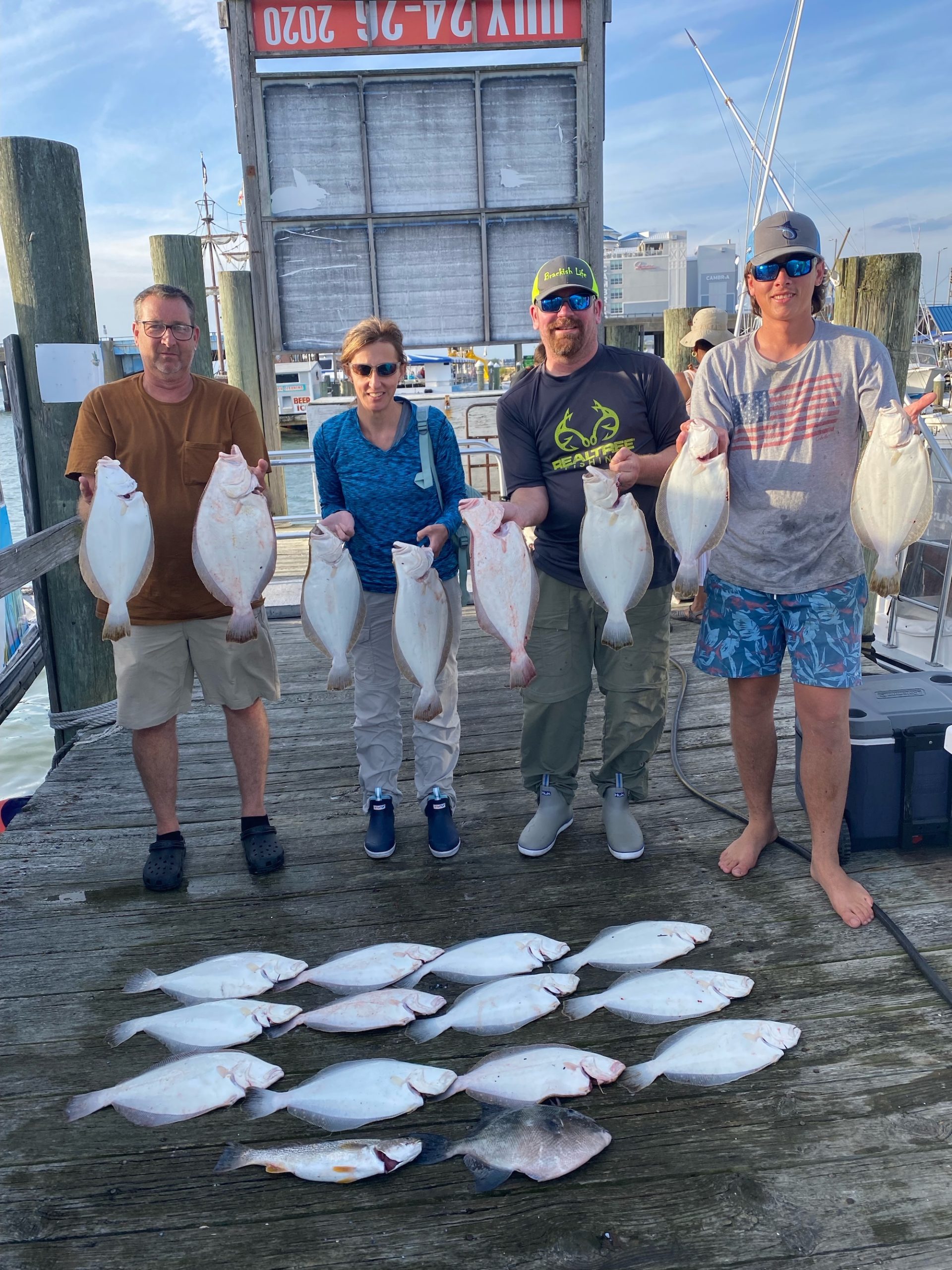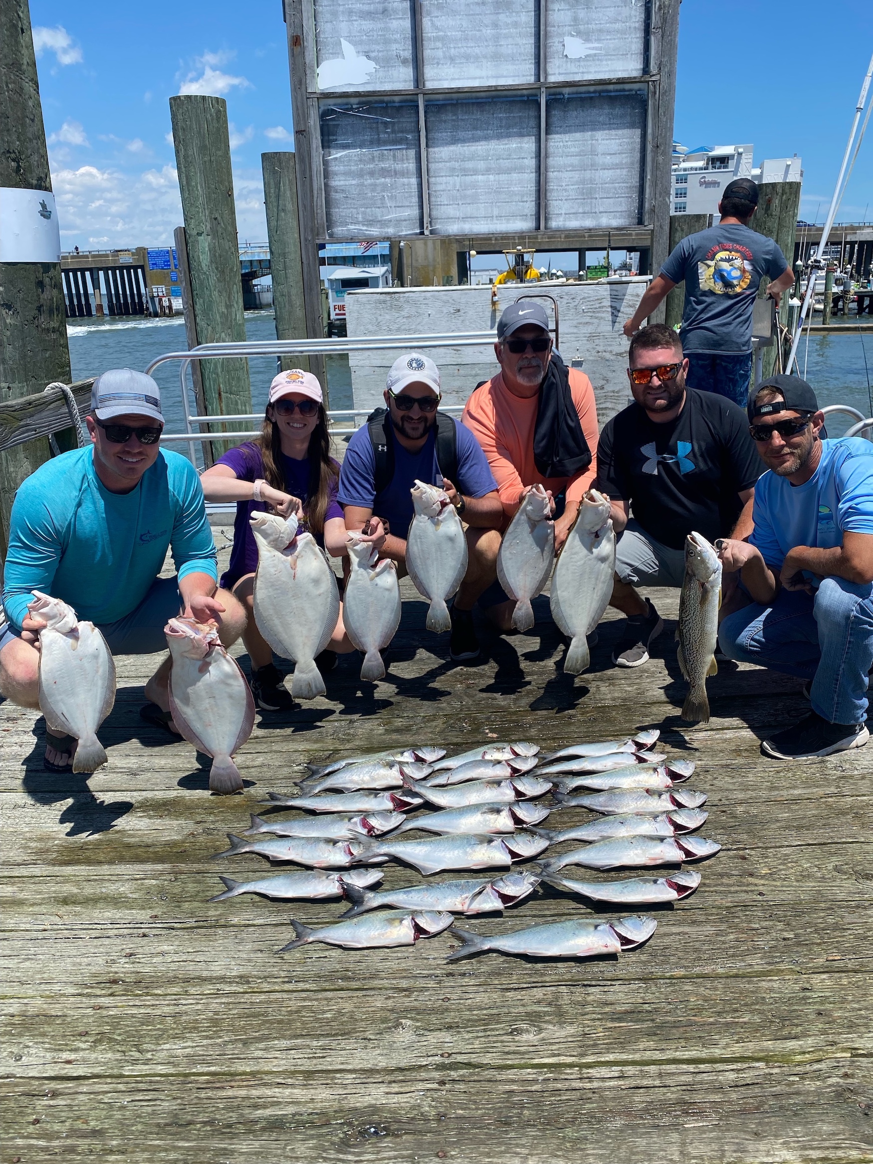 Captain Chase Eberle of Chasin’ Tides Charters had some good fishing for his crews today with plenty of limits of flounder, a bonus trout and some bluefish.