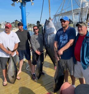 Captain Andrew Dotterweich is back in town with the Fish On and today he started his season off right with a line up of yellowfin tuna for his crew.