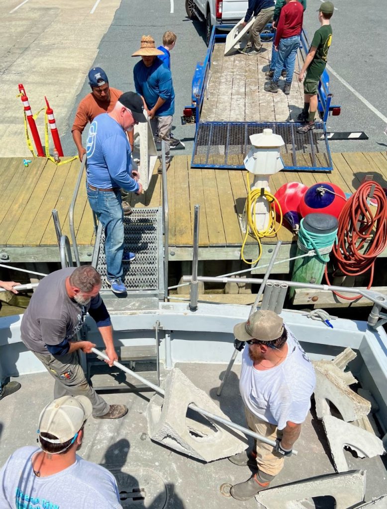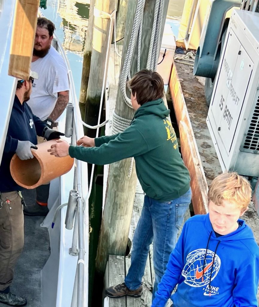 Captain Monty Hawkins of the Morning Star had some great help today doing some terrific work for the Ocean City Reef Foundation.
