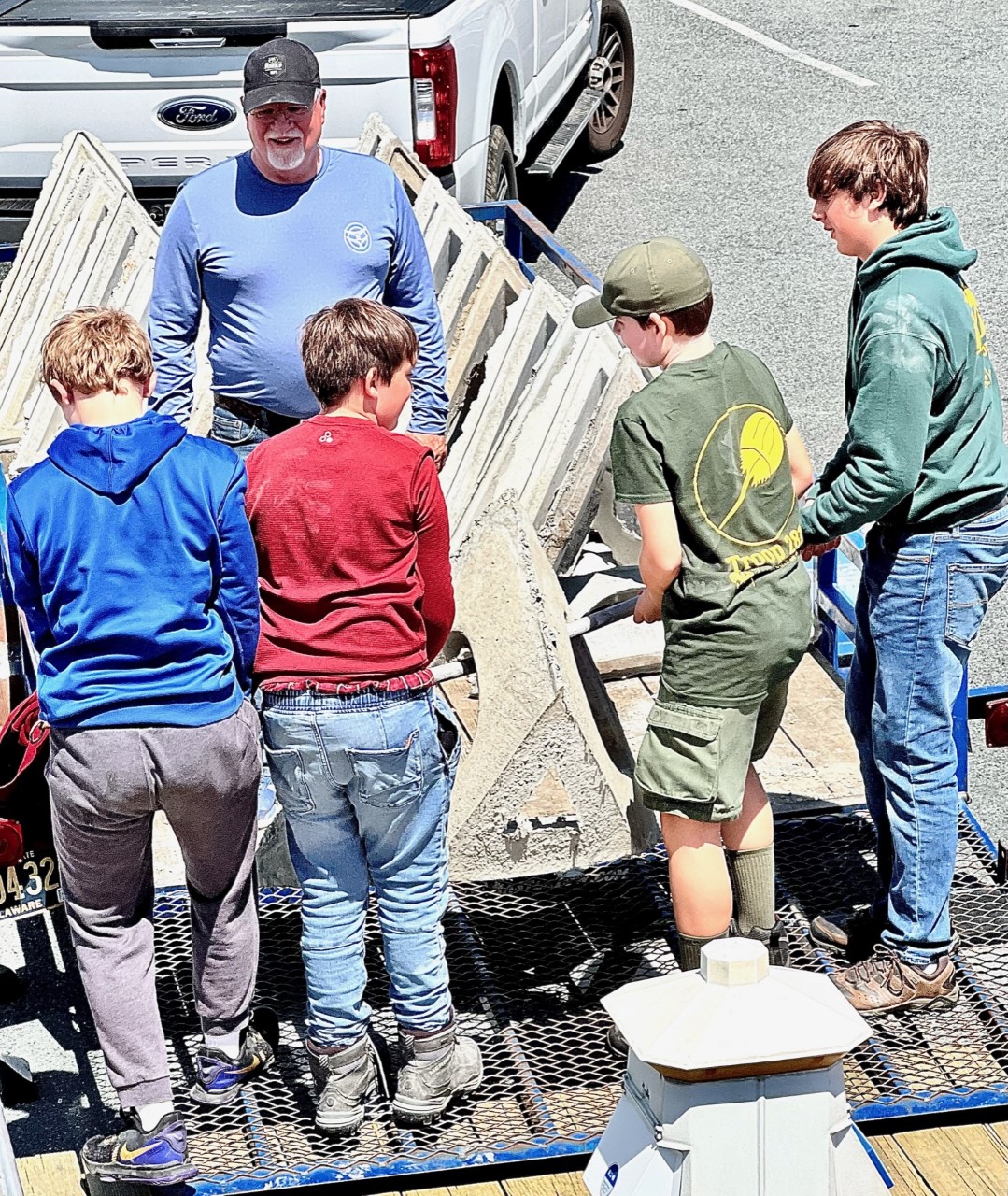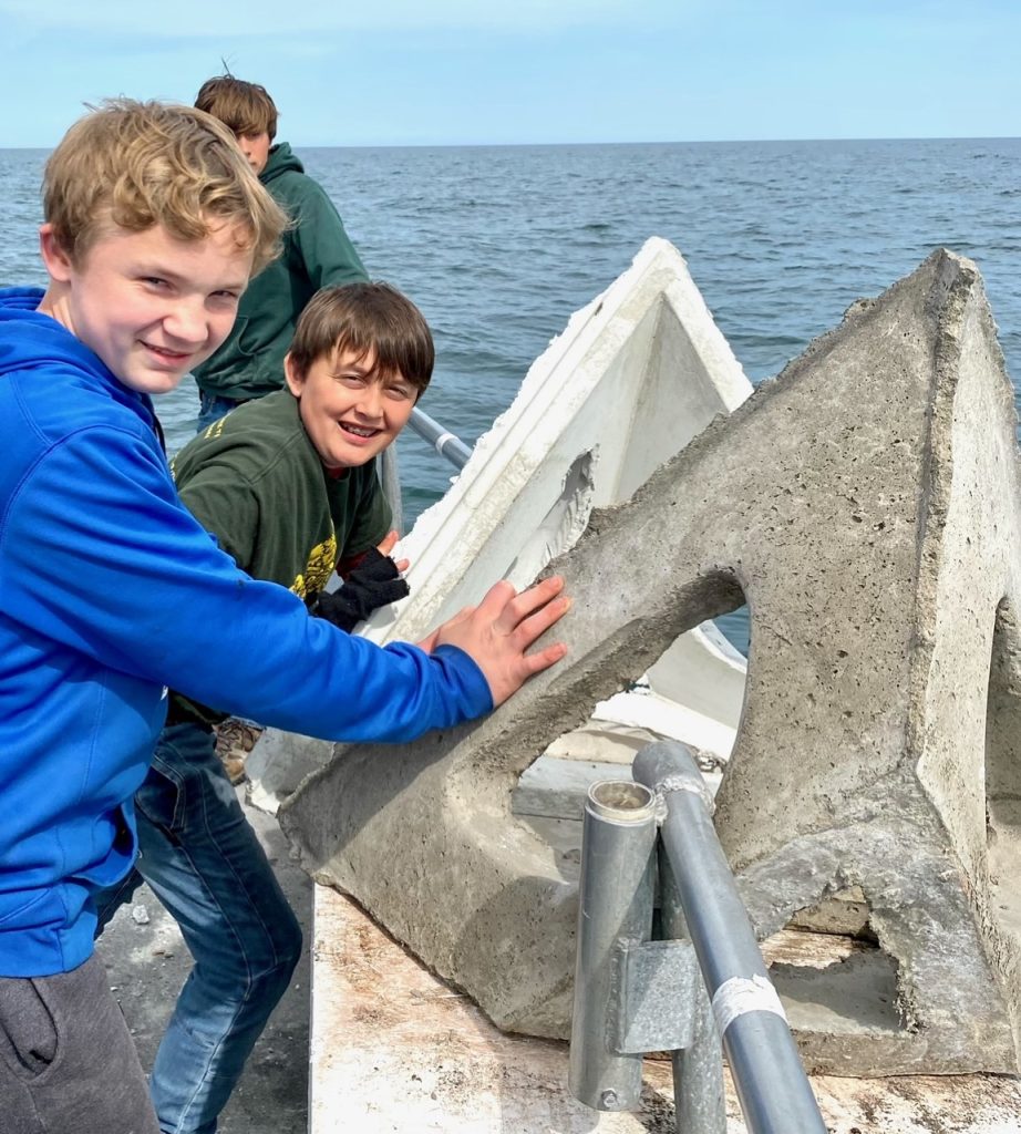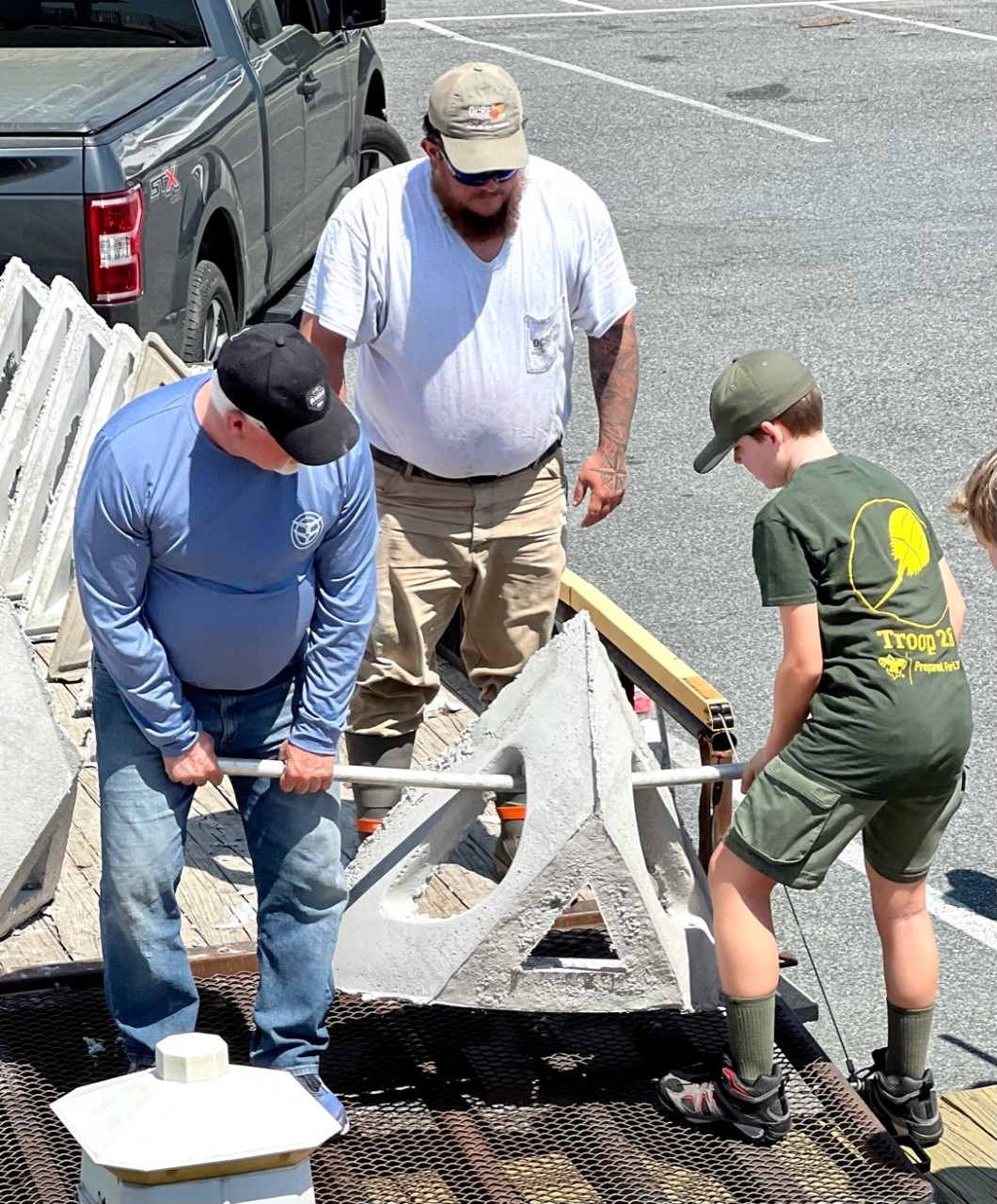 Ocean View Scouts worked hard this day. I suspect Eagle Scout applicant Jacob will have no issues with the review board. Young men moved just shy of 10 tons of cement in nearly 11 hours to build the Peter Kangas Memorial Reef.