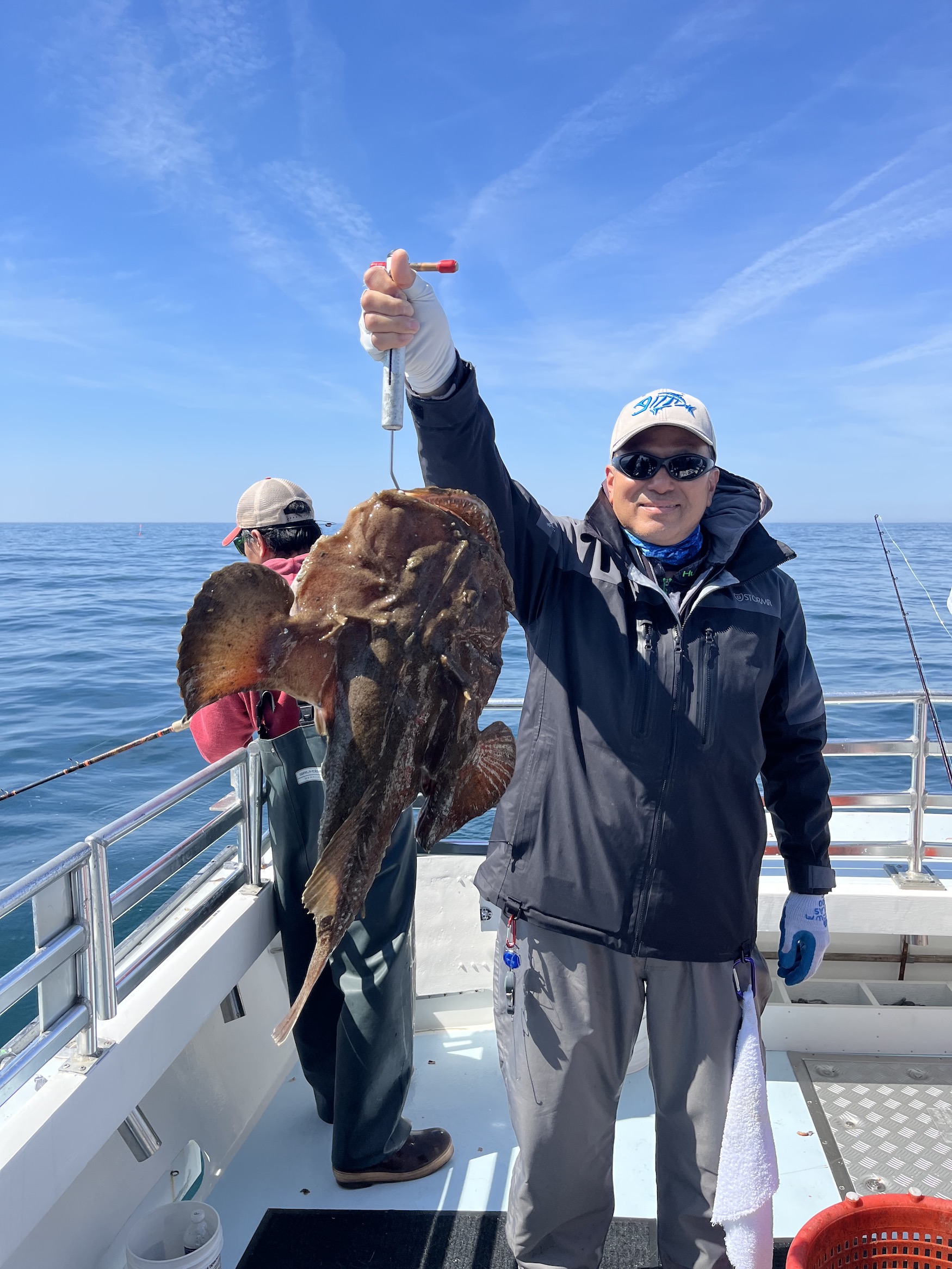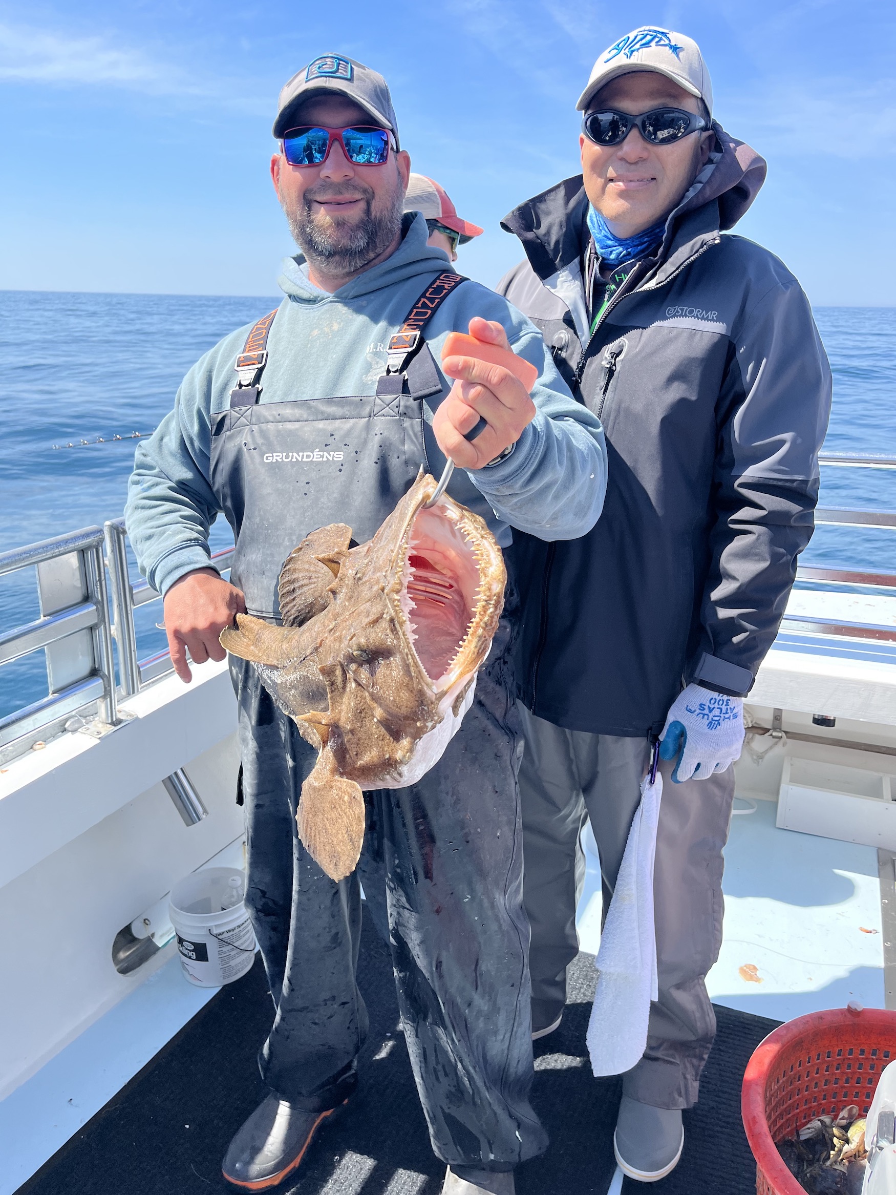 Captain Kane Bounds of the Fish Bound also had an insane day of blackfishing with 9 fish in double digits today. Paul had two 11s and a monkfish, Chan had two 11s, Brian had a 12, Dennis and Mark had 13s, Sunny had a 14 and the biggest of the day belonged to Alex who caught a fish over 17 pounds. Most all of the big fish were released and several 7-9 pound fish went in the box.