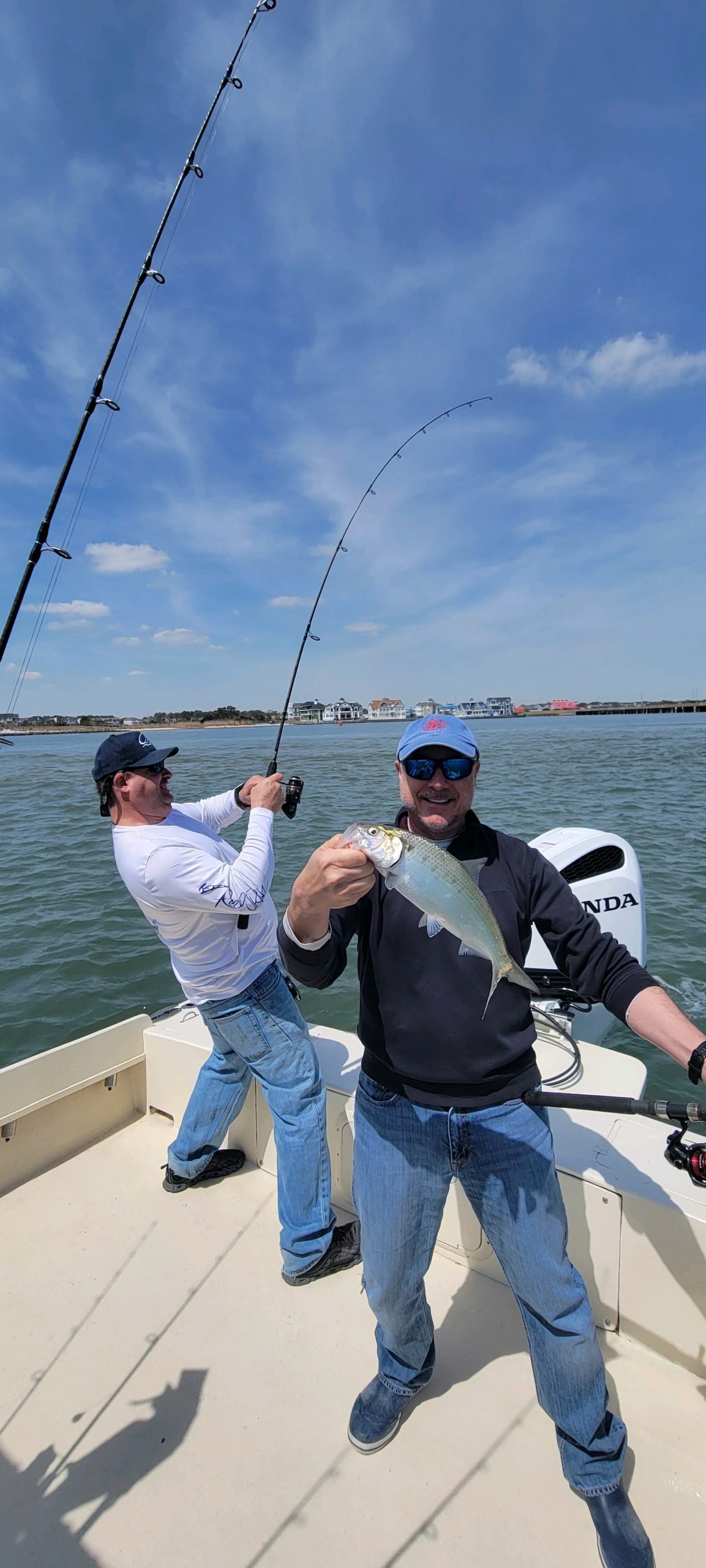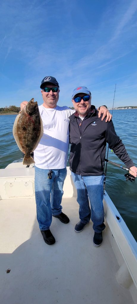 Tautoggin’ in the bay wasn’t bad either and Captain Jason Mumford of Lucky Break Charters found a few for Mark Debinski of Bluewater Advisory Group and his crew. The guys also had a bunch of catch and release shad action and one keeper flounder.