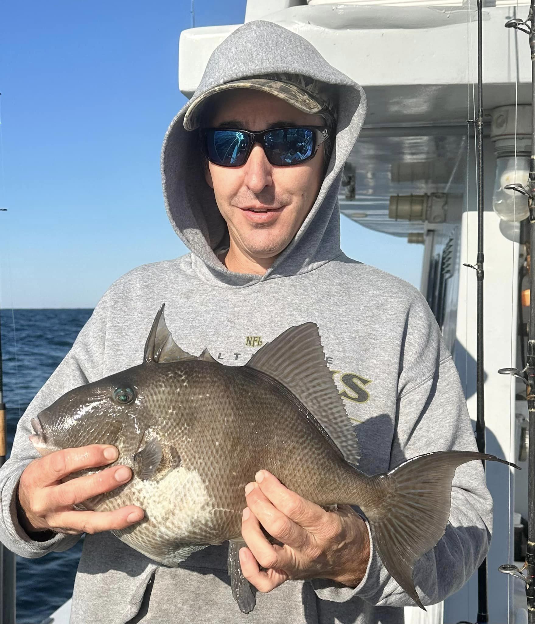 Today started off cool and crisp and the ocean had a little settling down to do, but by this afternoon it was sunny and warm and the ocean was a pleasant place to be bending a rod on some flounder, triggerfish and black sea bass.