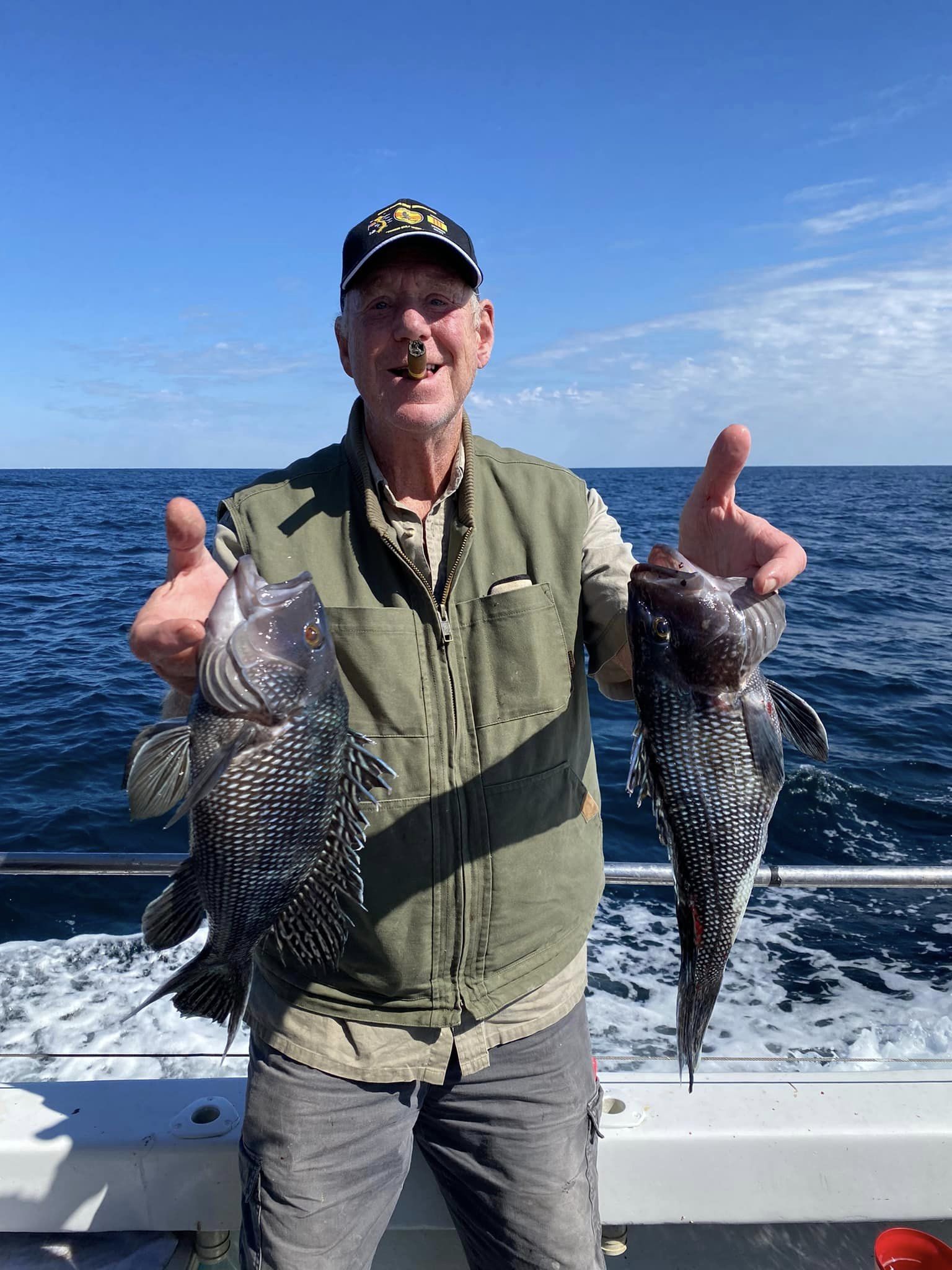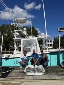 Captain Monty Hawkins of the Morning Star was glad to get back on the ocean today and he treated his clients to sea bass and triggerfish.
