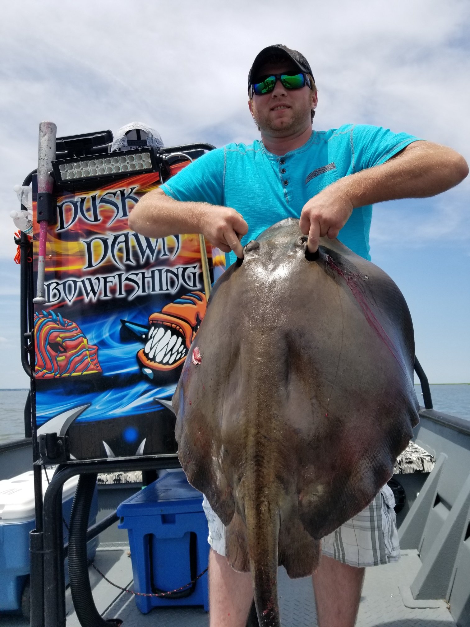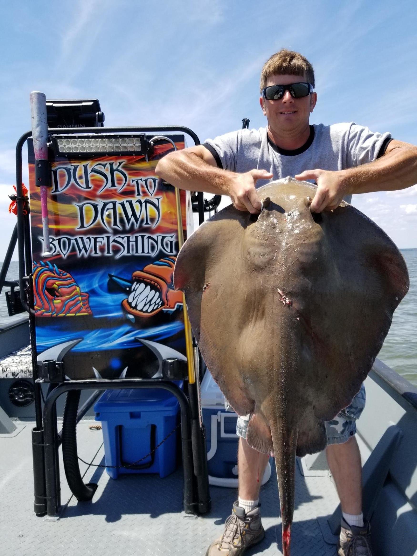 Captain Marc Spagnola of Dusk to Dawn Bowfishing just left for a night trip, but not before being on the water this morning and putting his shooters on some great action for southern rays.