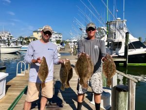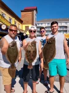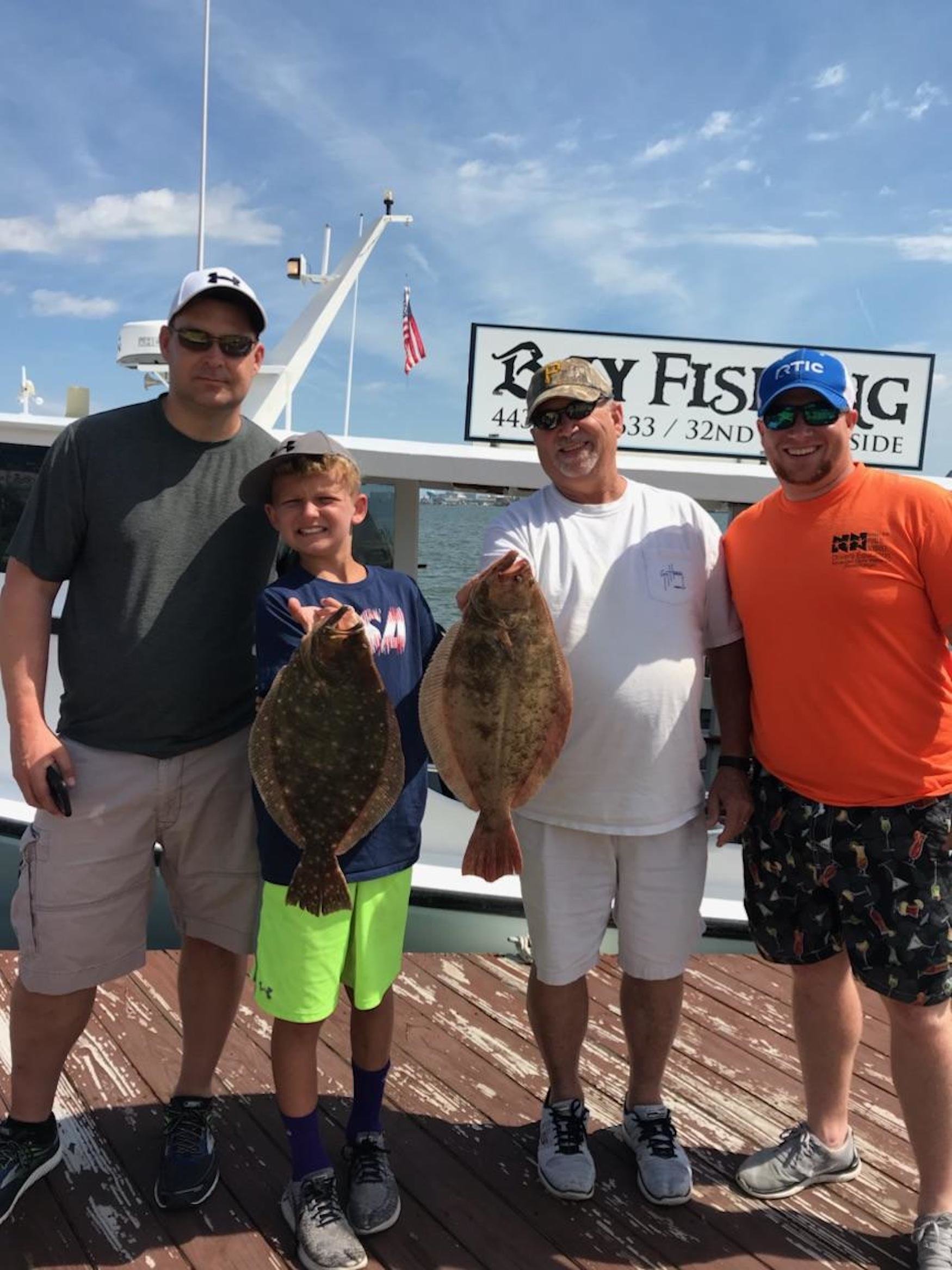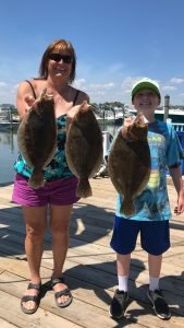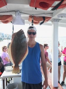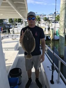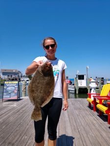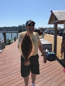 I usually put the offshore fishing at the beginning of the report and move closer to shore as it reads on, but today the flounder fishing seemed to be so good that I decided to move it to the top. Whether anglers were fishing on a party boat in the ocean or the bay, a charter boat on the ocean or the bay or in their own boat flounder were snapping today. The first set of pics that I got was from young “Eastern Shore” Joey Marowski with some nice flounder that were caught on the Bay Bee. There were some fish to 24″ caught on this morning’s trip and another nice fish this afternoon.