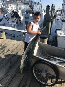 Paul Lebling of the Spring Mix II reported fishing was kind of slow today, but Captain Chris Watkowski and mates Ayrton “The Kayak Kid” Pryor and Jacob Lewis did find their anglers 10 nice mahi at the lumpy bottom inside the Washington Canyon.