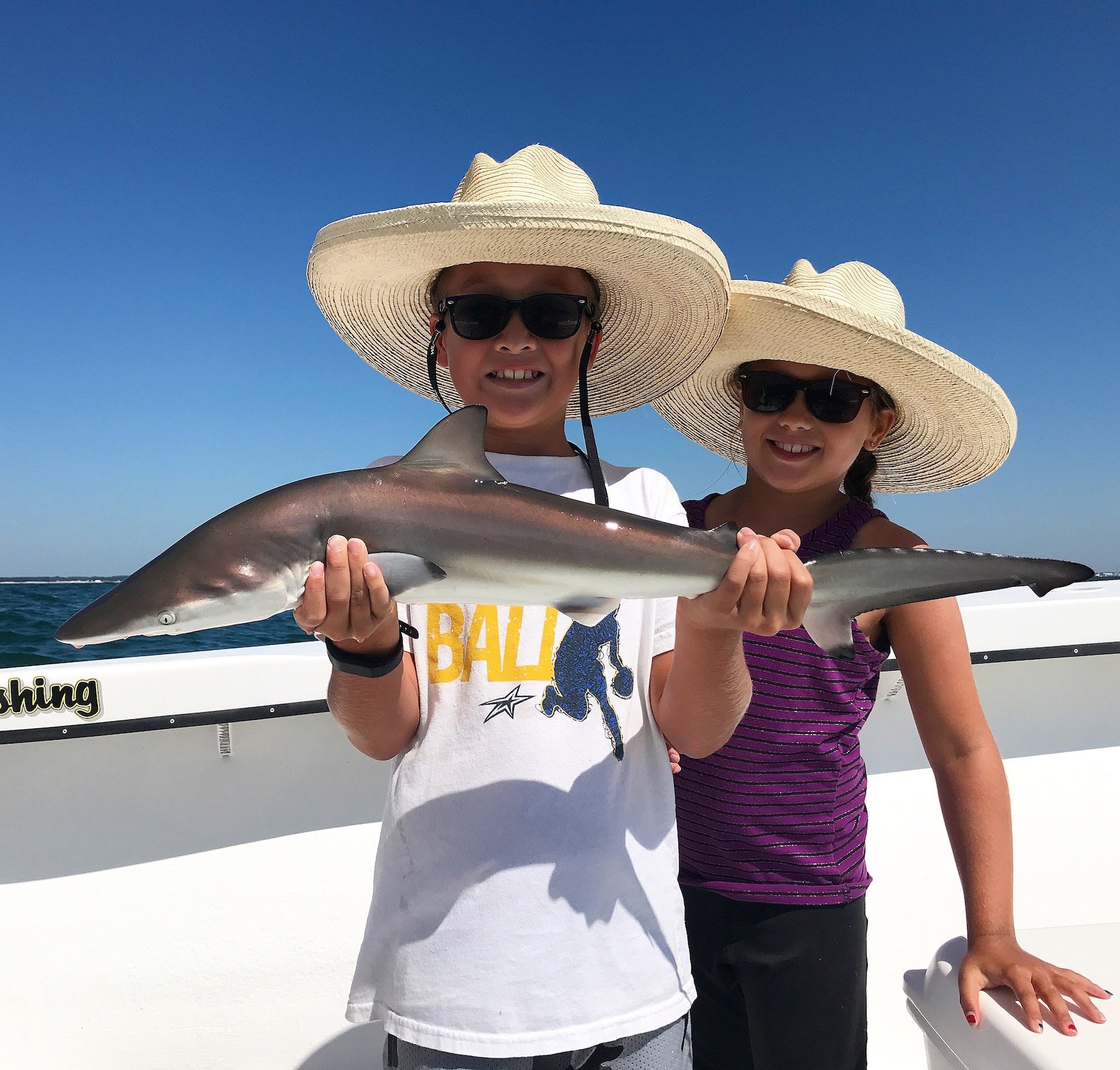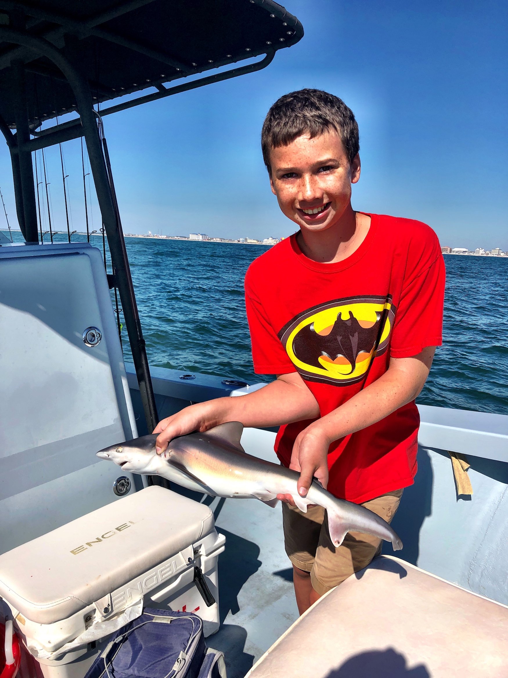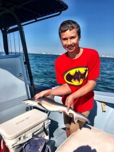 Captain Jeff Coats of Pitboss Fishing fresh back from his trip to Icast got right back in the swing of things with some fun catch and release shark fishing action. Elijah and Abigail Raike along with their dad had some fun fishing cut bait to release 17 Atlantic sharpnose, spinner and sandbar sharks.