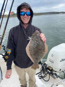 Nick Serio fished behind Assateague Island with no luck and then moved up to the Thorofare where he landed this nice keeper flounder that was over 18″ on the Deadly Tackle Deadly Double in orange with a chartreuse Gulp.