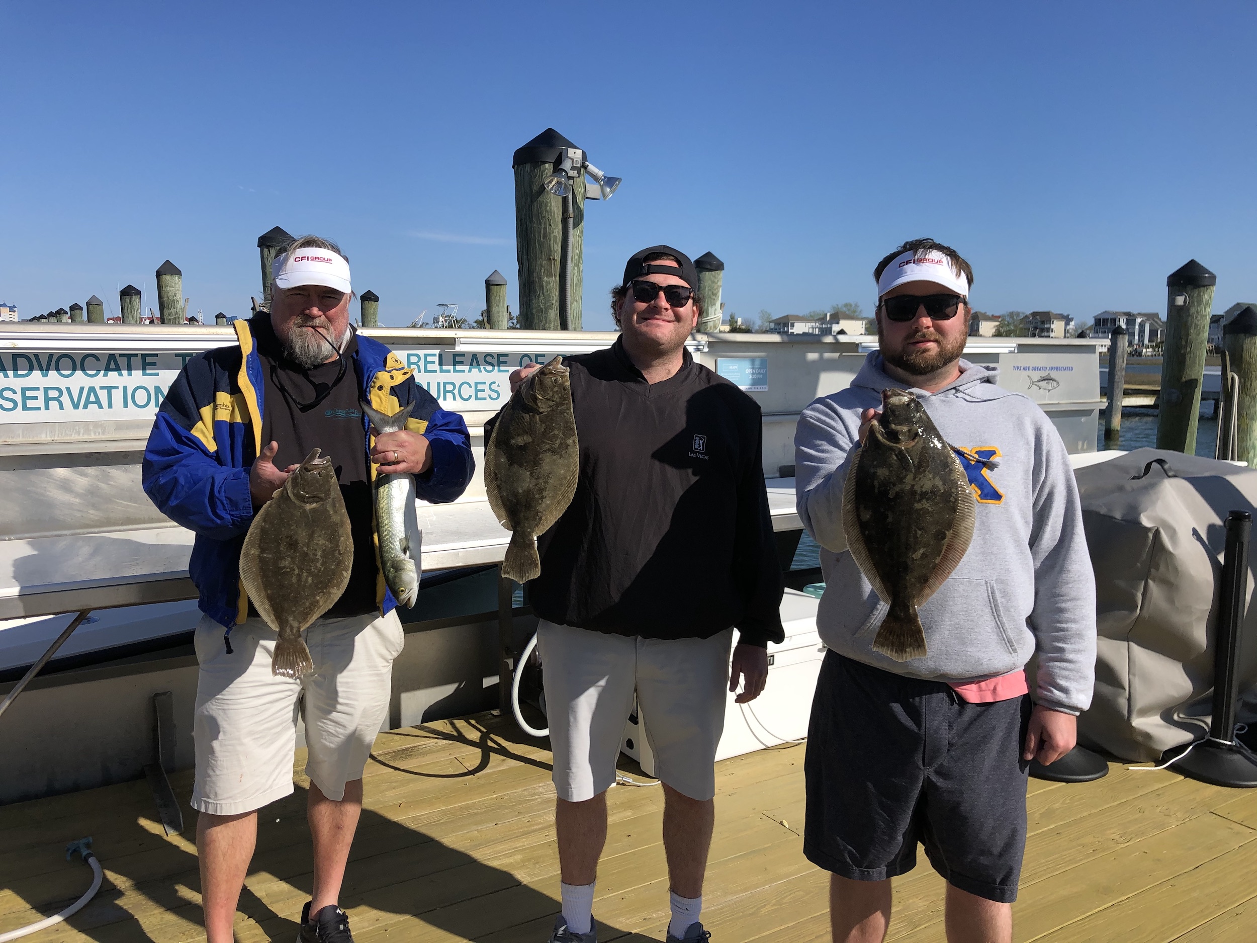 Captain John Prather of Ocean City Guide Service ran his first trip of the season today on his new 29′ Sea Vea and he had a very productive day for his anglers. Captain John reported a snapper bluefish from the back bay, some throwback flounder action and these three keepers that hit the dock at the Ocean City Fishing Center.