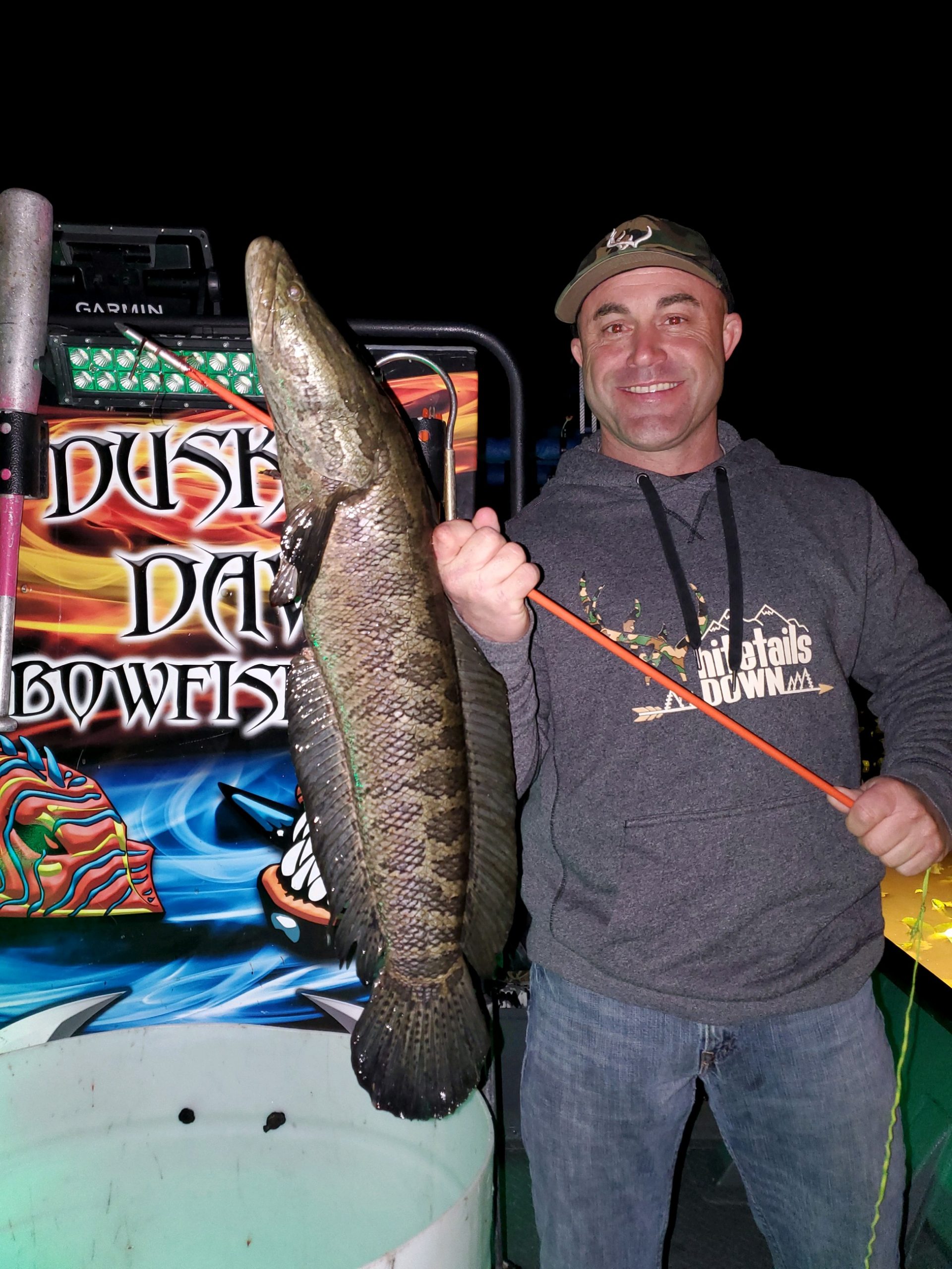 Captain Marc Spagnola of Dusk to Dawn Bowfishing had my good friend Steve Goodley and crew on board last night and showed them a great time. Steve is no slouch when it comes to the outdoors and he and crew were able to hit their marks on some tasty snakeheads.
