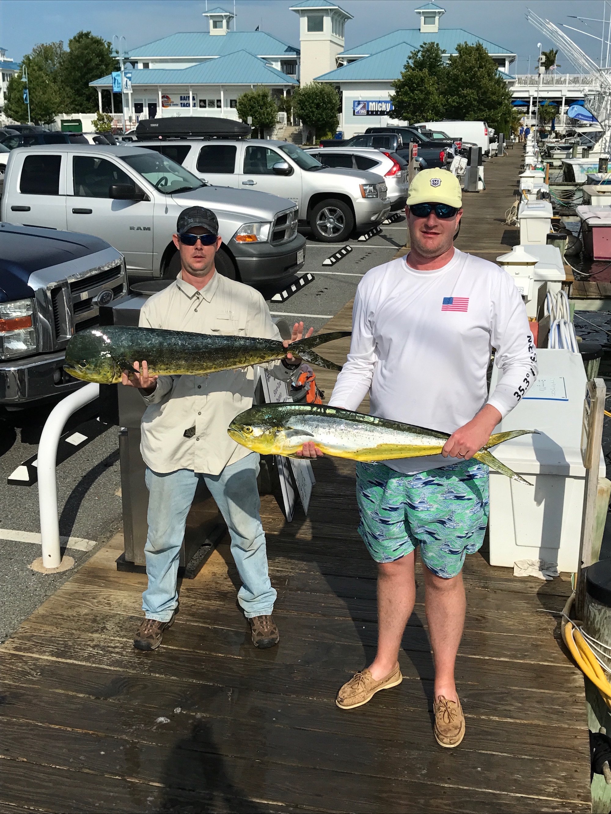 It was a pretty slow day overall offshore, but Captain Chris Watkowski and mate Ayrton “The Kayak Kid” Pryor from Spring Mix II did find a couple of gaffer sized mahi on today’s make up trip.