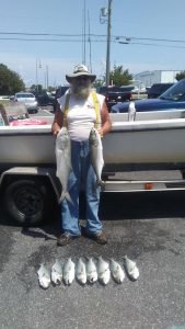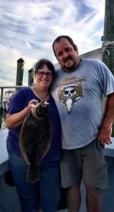 One thing that has been consistent over the past few weeks has been the flounder fishing in the back bay. The water in the bays has been really clean on the high tide for the past several weeks and that is good news for flounder fishermen. Today Captain John Prather of Ocean City Guide Service had some good luck with the flounder on the high tide and headed to the ocean on the low tide when the water isn’t as clean. It was a nice keeper flounder for this couple in the bay and some nice shark fishing releases from the inshore ocean. Captain John reports that he and his anglers released over 30 sharks on two trips today!
