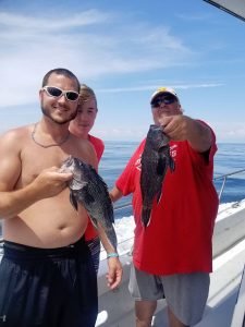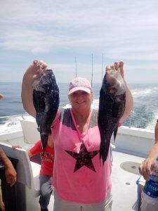 The Anlger with Captain Chris Mizurak had some decent fishing today in beautiful, flat calm ocean conditions. Captain Chris put his anglers on some good sea bass action and a couple of keeper flounder.
