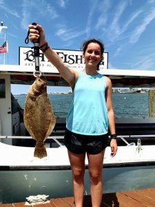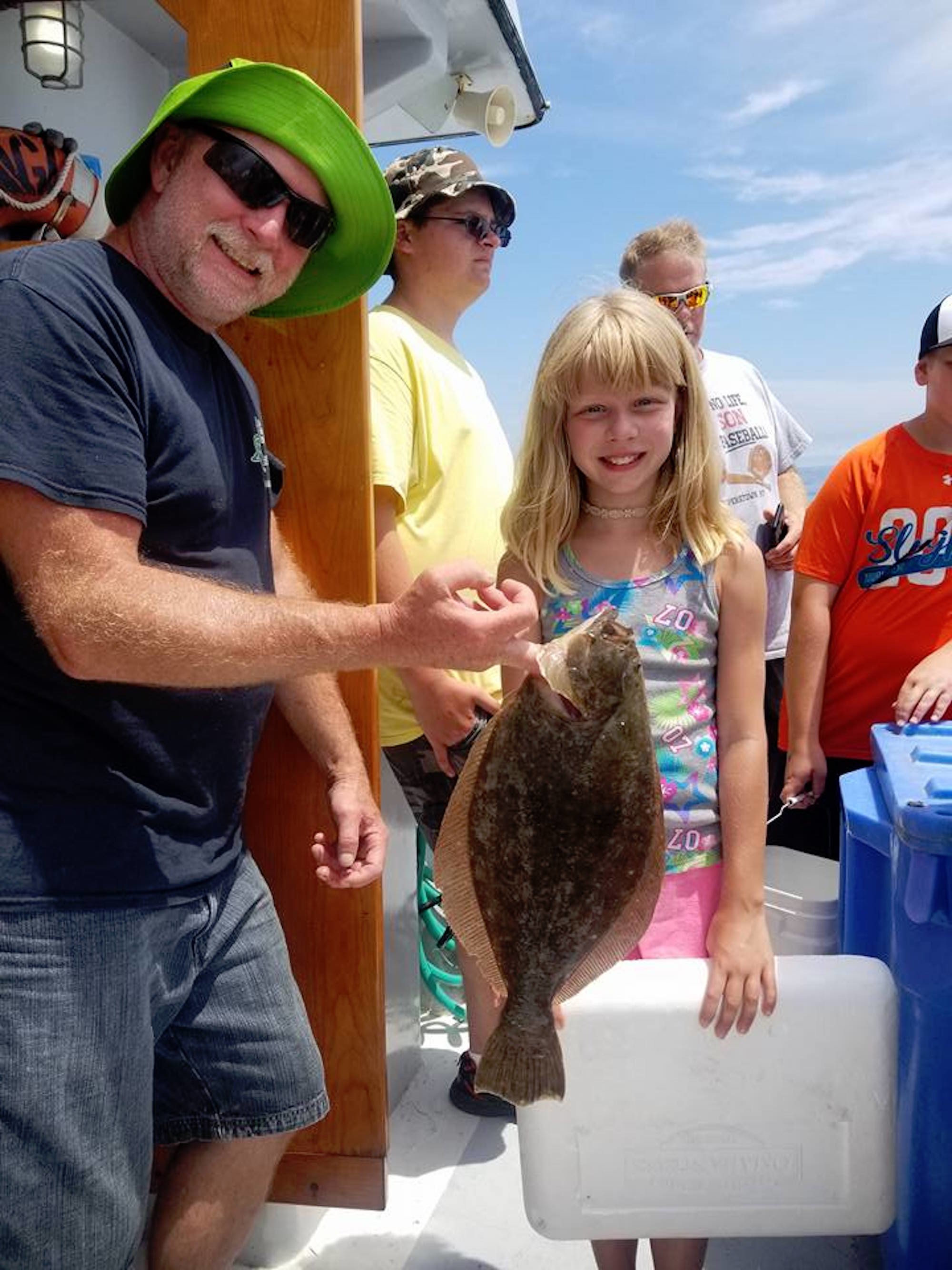 Captain Mike Giardina on the Calico Jack from Back Bay Adventures has been having some good luck in the back bay in the clean water. Captain Mike put this angler on a nice 18″ keeper flounder.